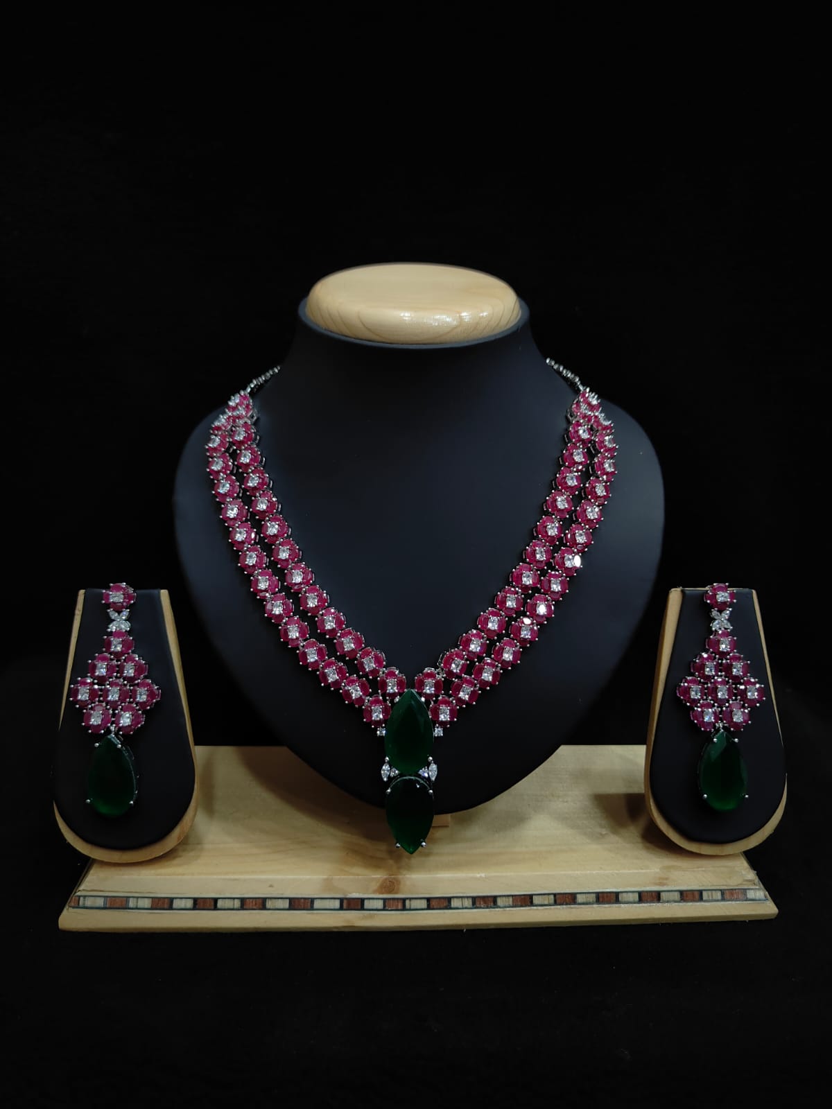 AD ZIRCON STONE NECKLACE WITH EARRINGS