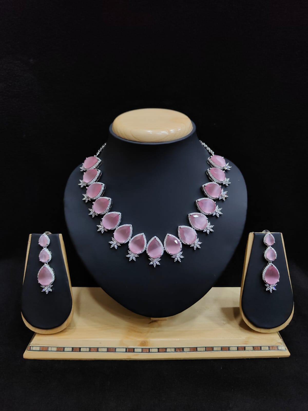 AD ZIRCON STONE SILVER POLISH NECKLACE WITH EARRINGS