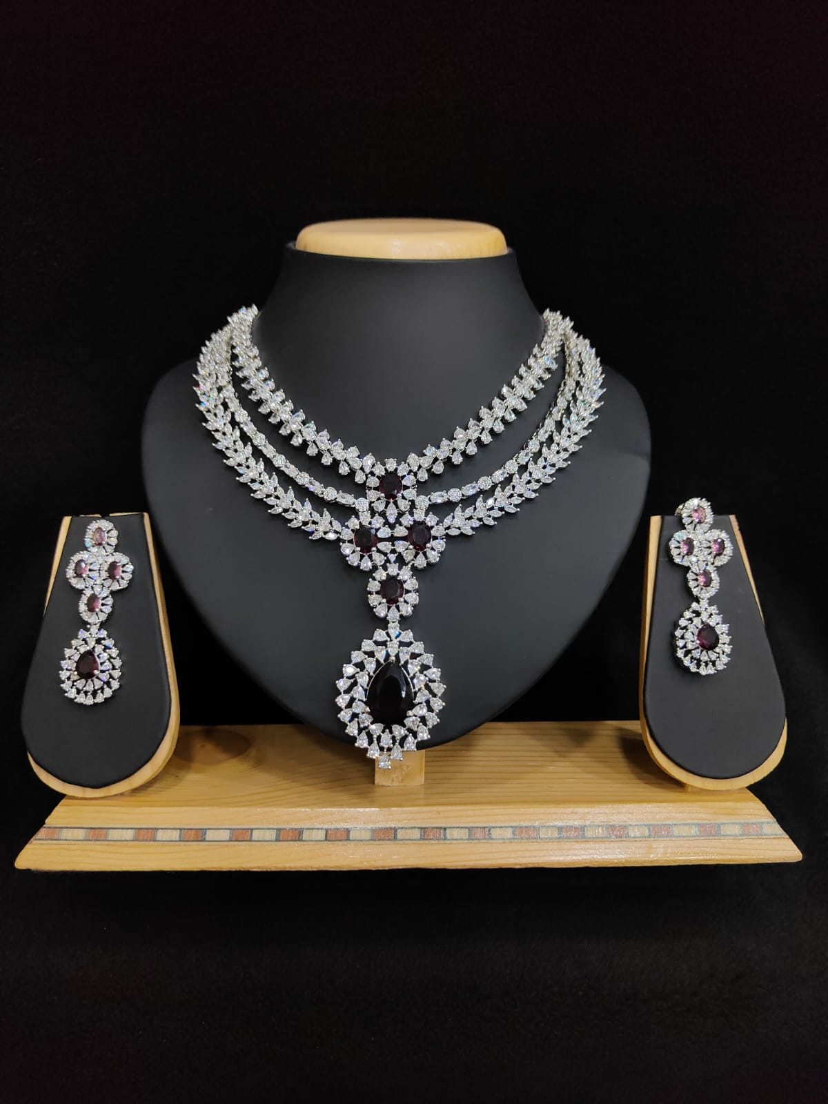 RODIUM POLISH AD ZIRCON STONE NECKLACE WITH EARRINGS