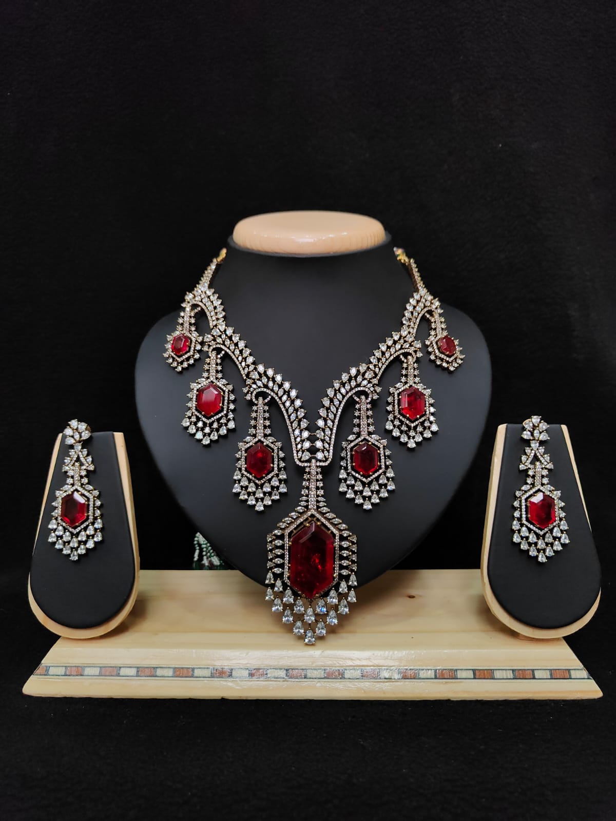 VICTORIAN POLISH BIG STONE NECKLACE WITH EARRINGS