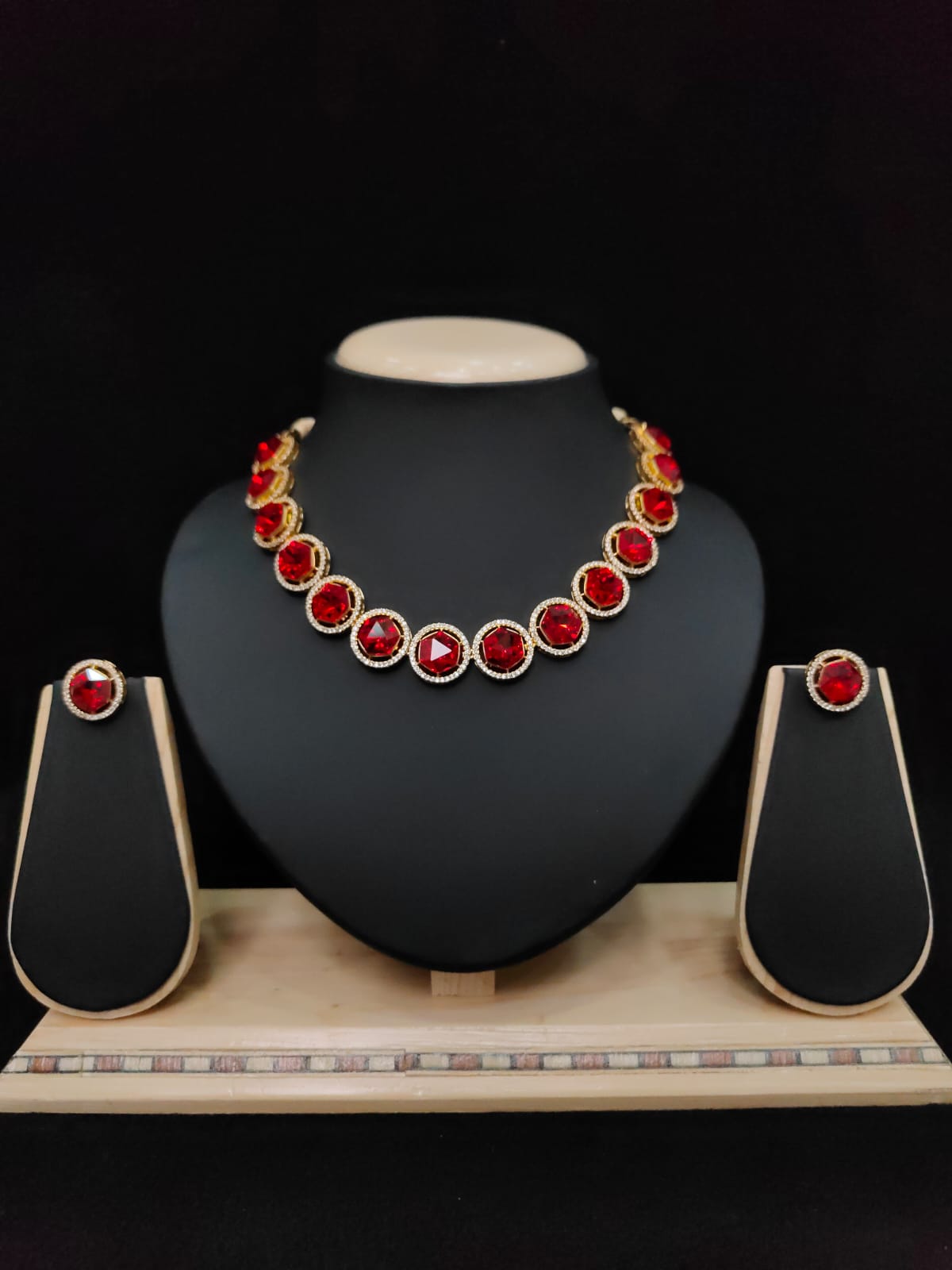 GOLD POLISH AD ZIRCON STONE NECKLACE WITH EARRINGS