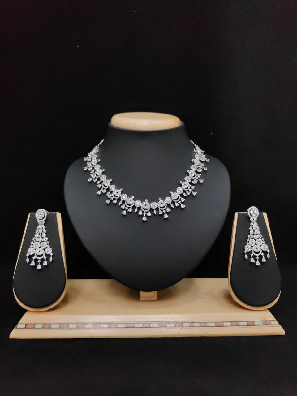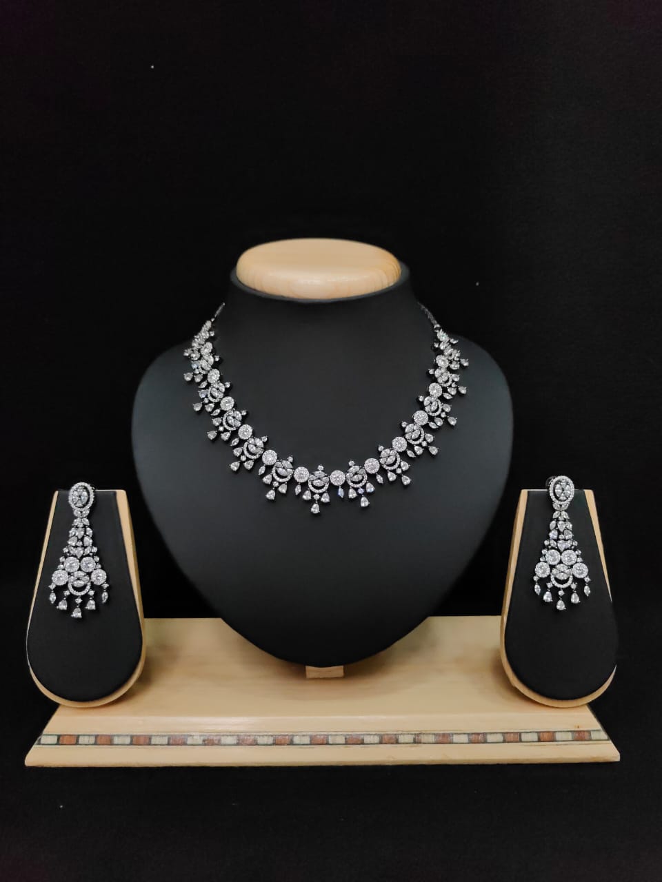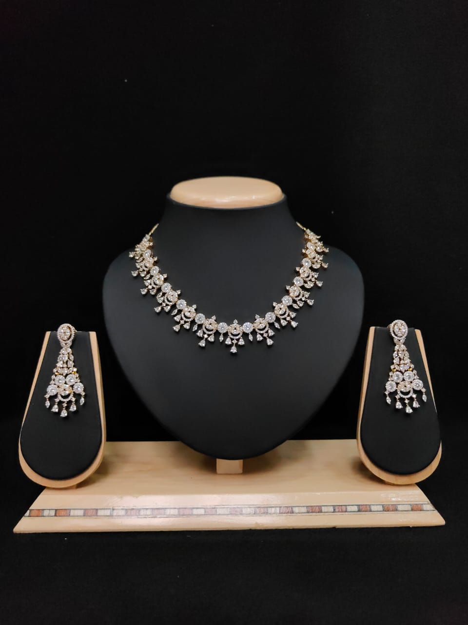 GOLD POLISH AD ZIRCON STONE NECKLACE WITH EARRINGS