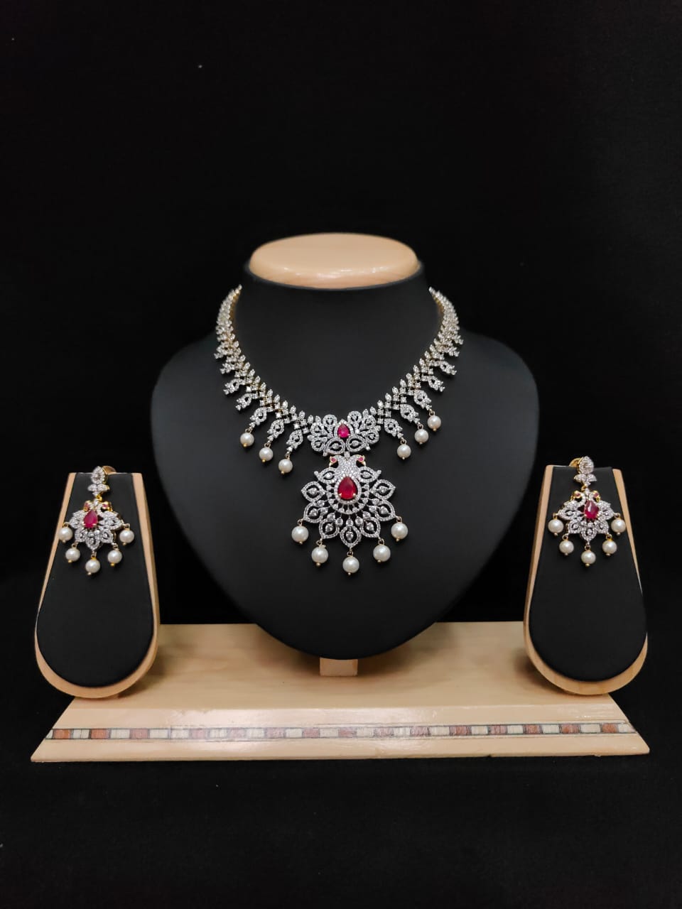 AD ZIRCON STONE NECKLACE WITH EARRINGS
