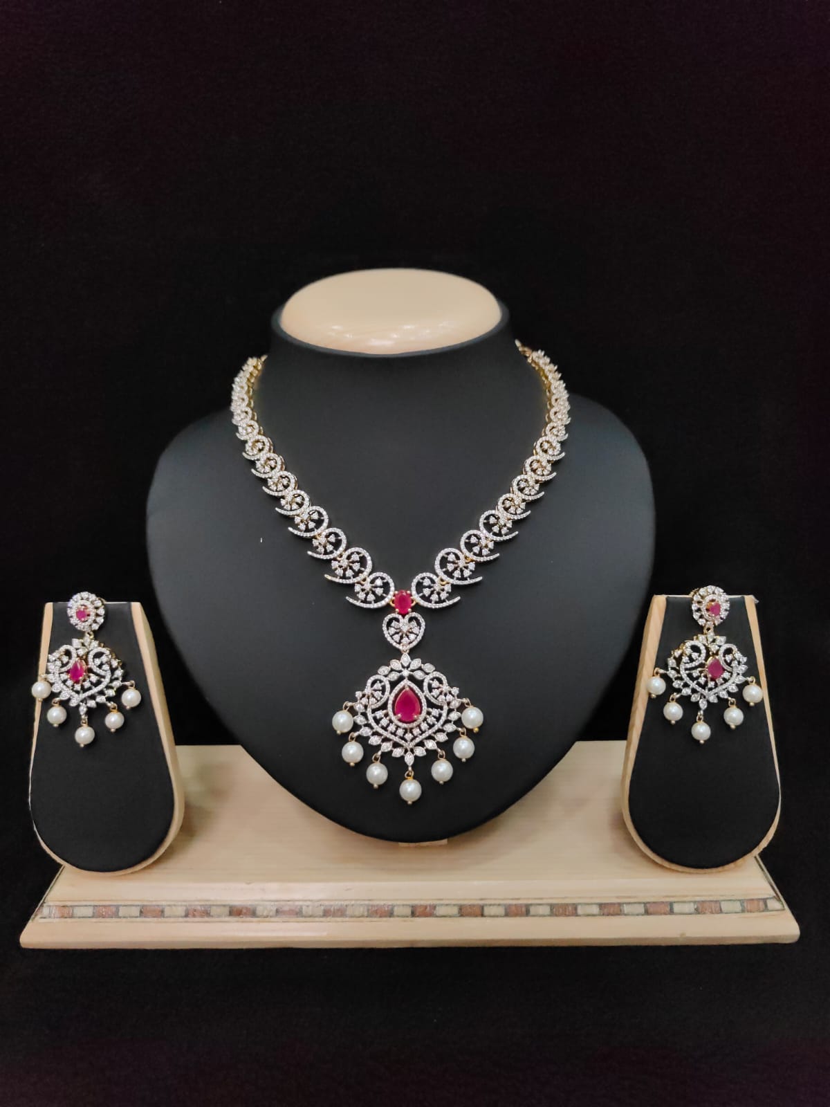 FLORAL DESIGN AD ZIRCON STONE NECKLACE WITH EARRINGS
