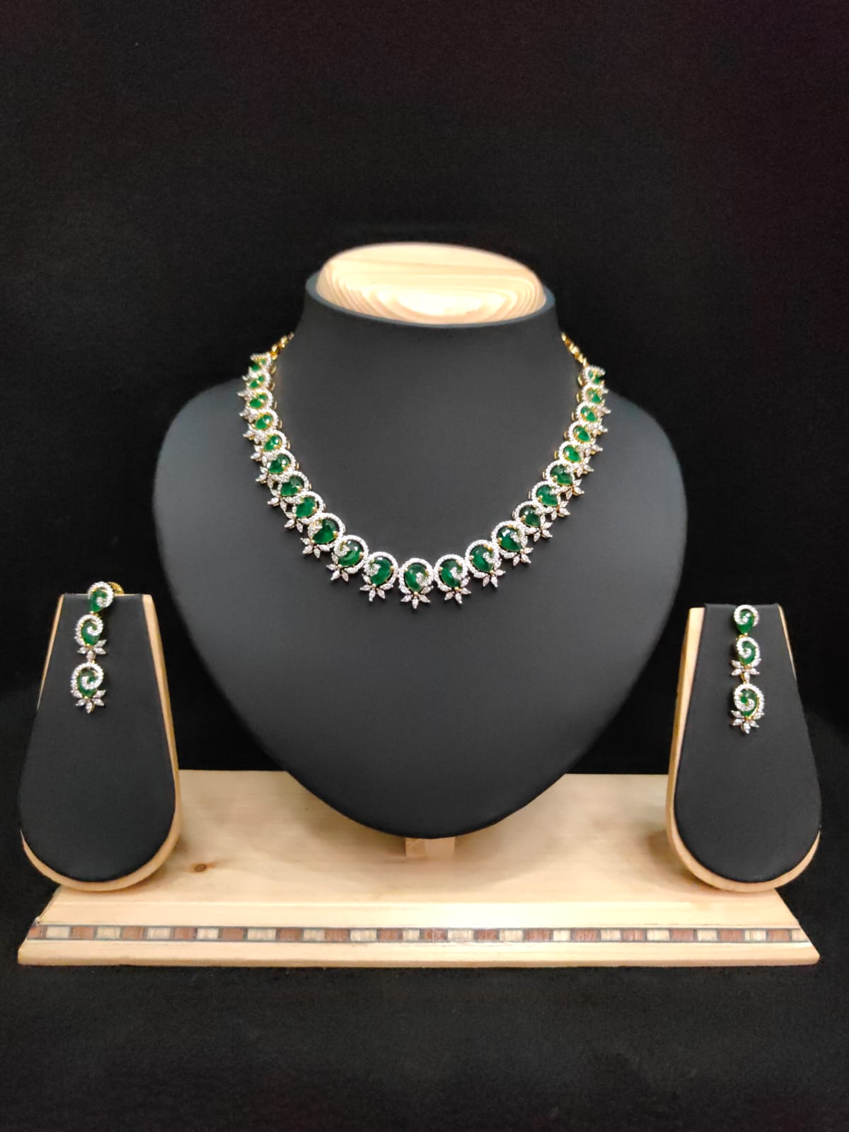 AD ZIRCON STONE NECKLACE WITH EARRINGS