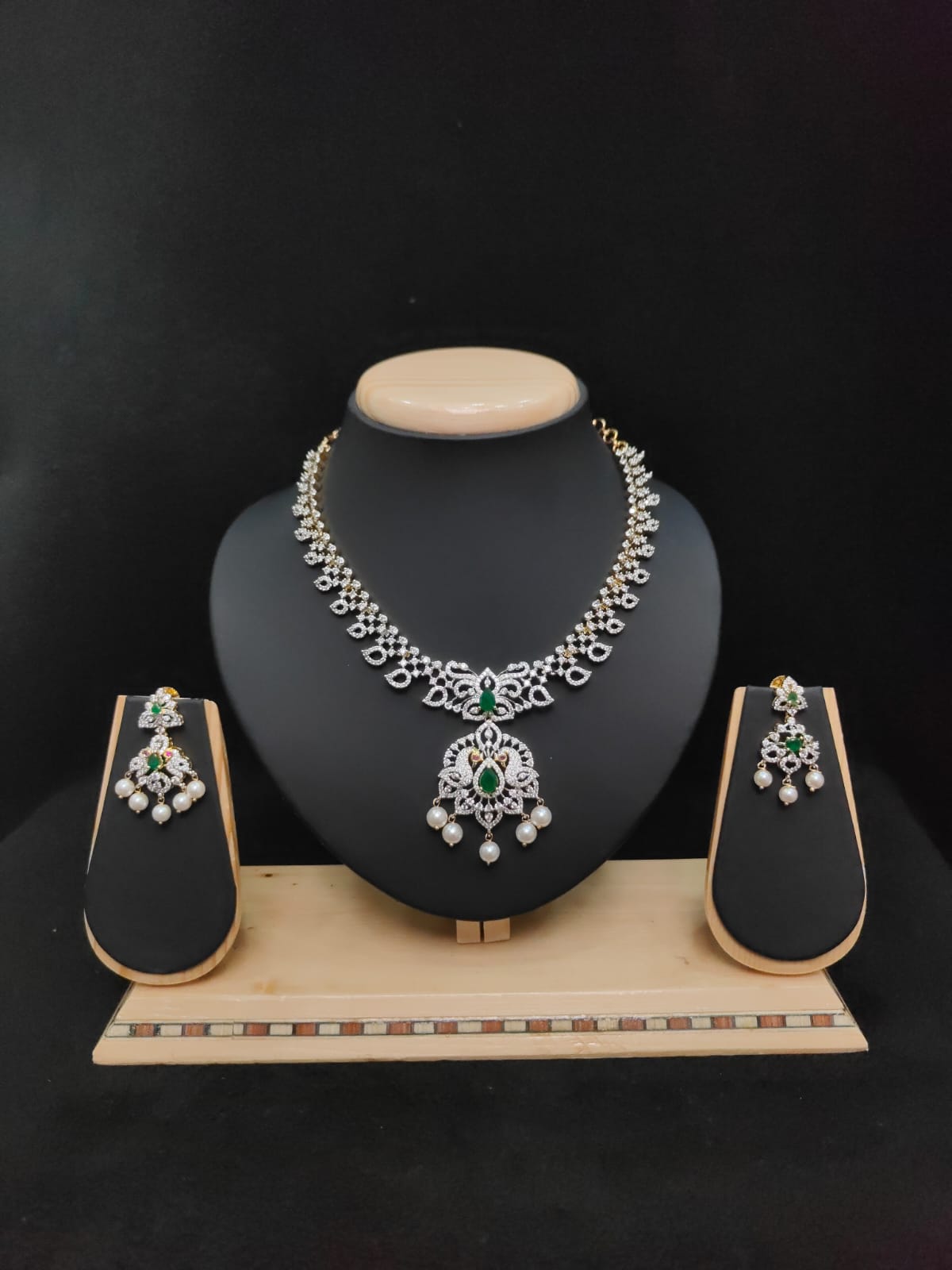 AD ZIRCON STONE NECKLACE WITH EARRINGS