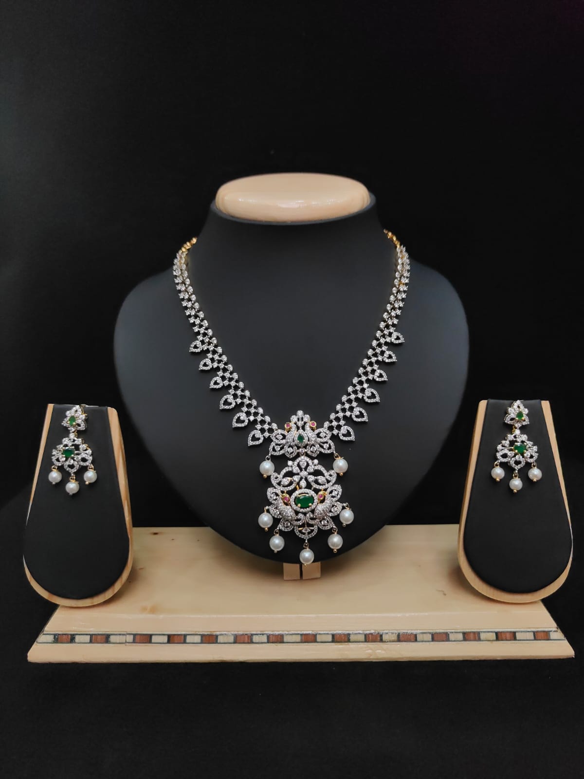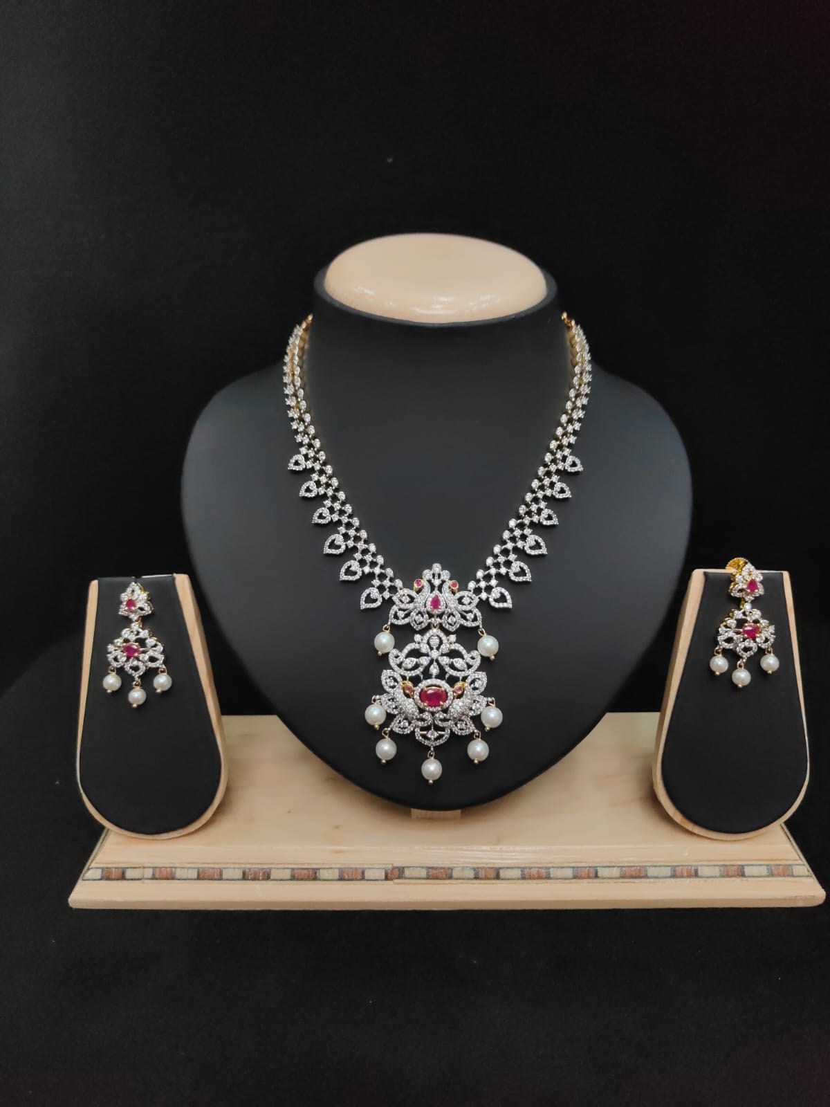 FLORAL DESIGN AD ZIRCON STONE NECKLACE WITH EARRINGS