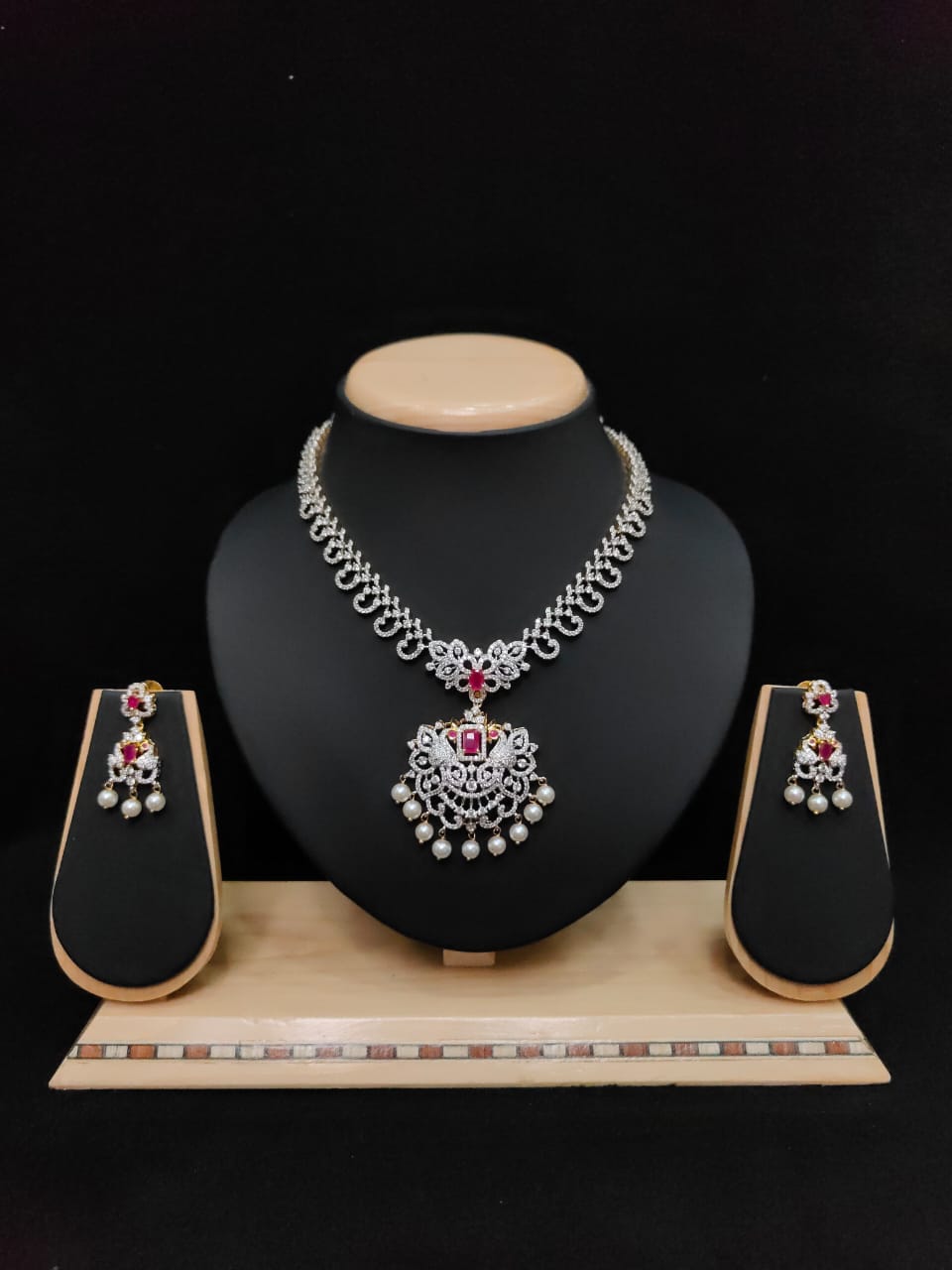 GOLD POLISH AD ZIRCON STONE NECKLACE WITH EARRINGS