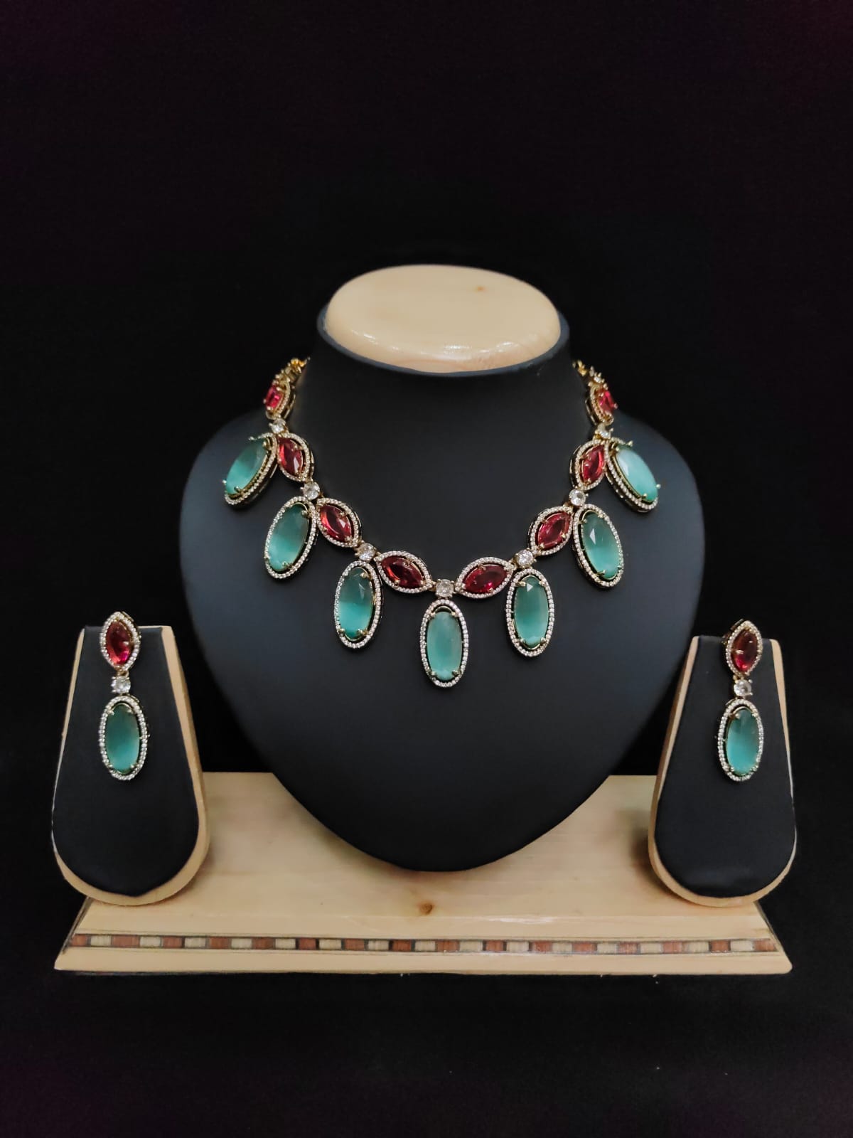 AD ZIRCON STONE NECKLACE WITH EARRINGS