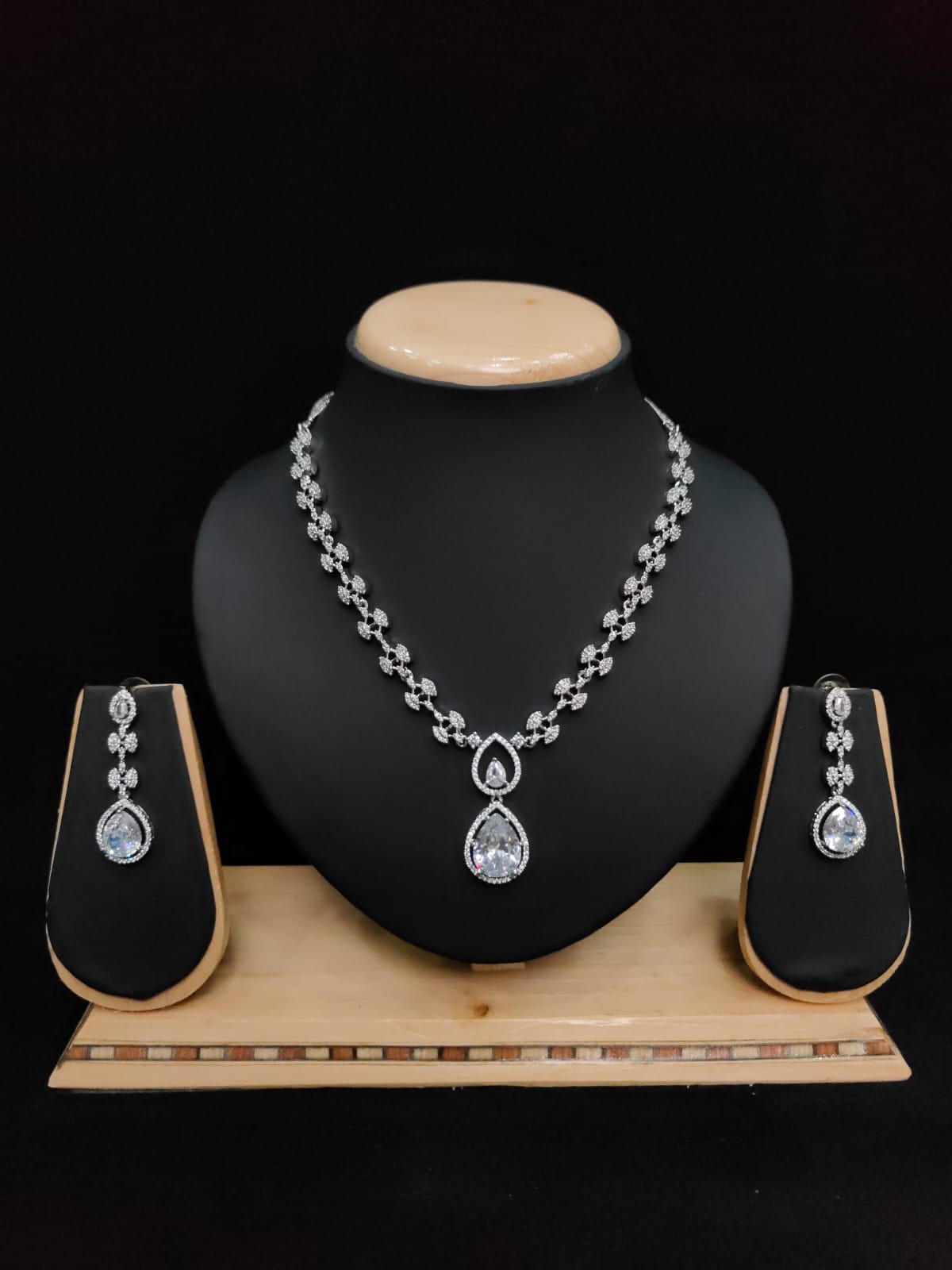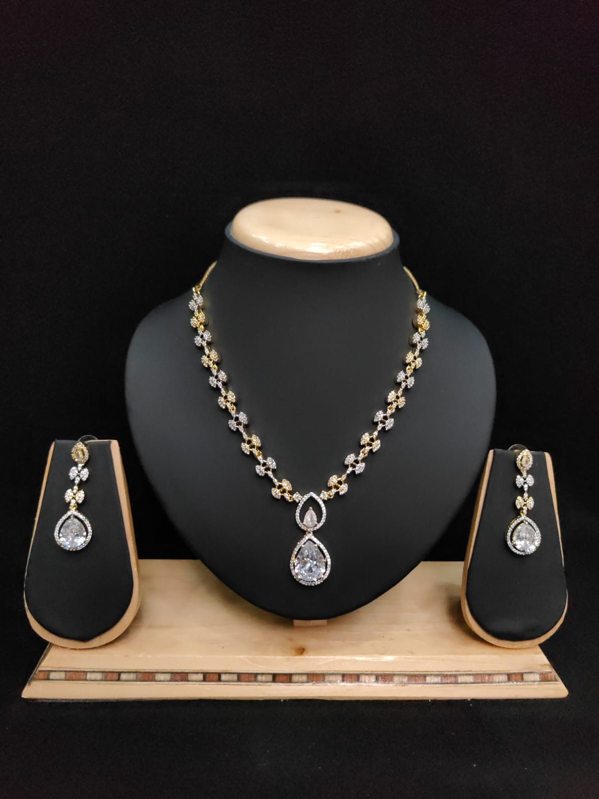 AD ZIRCON STONE NECKLACE WITH EARRINGS