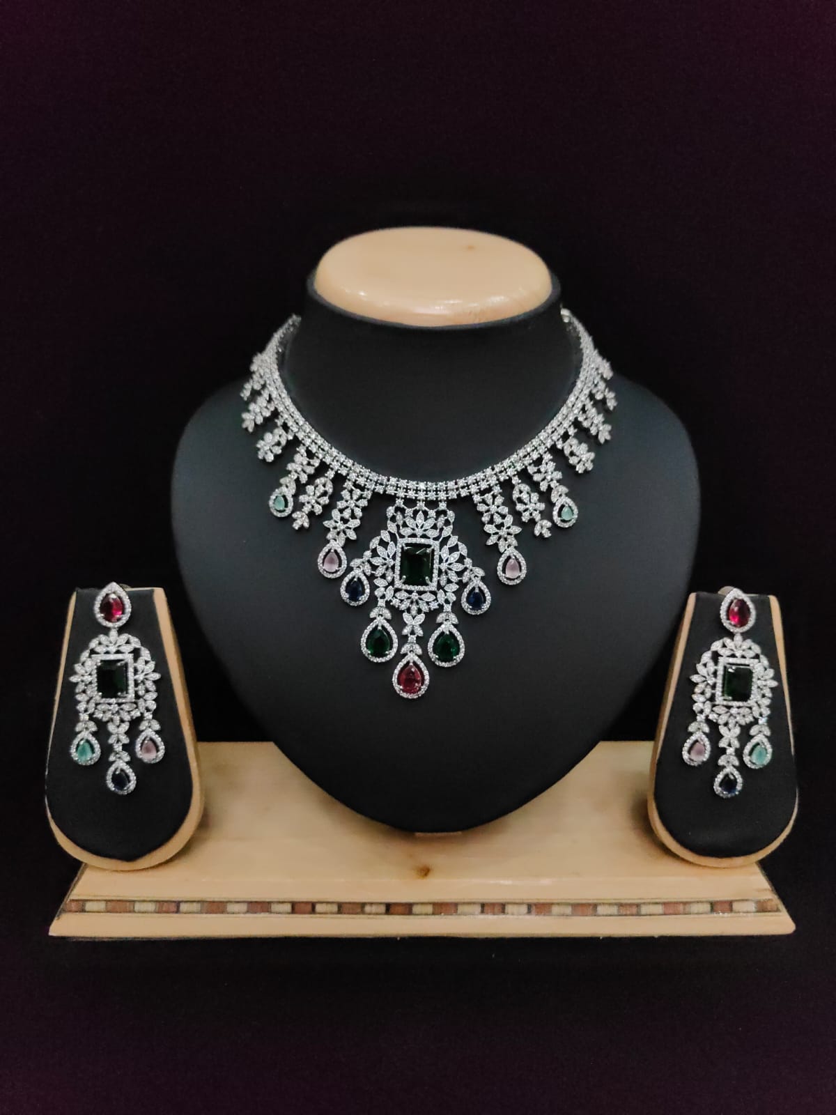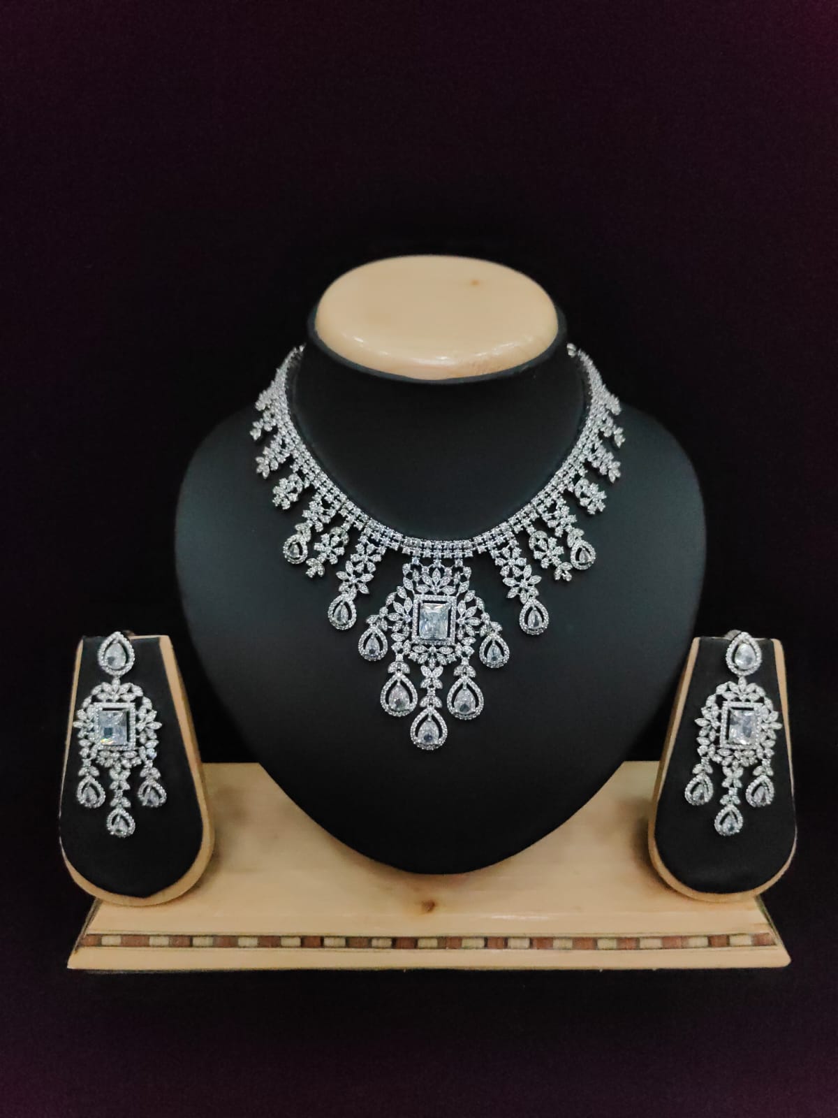 AD ZIRCON STONE NECKLACE WITH EARRINGS