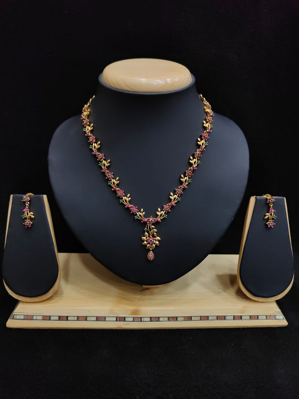 BEAUTIFUL FLORAL AND LEAFY DESIGN ANTIQUE NECKLACE WITTH EARRINGS