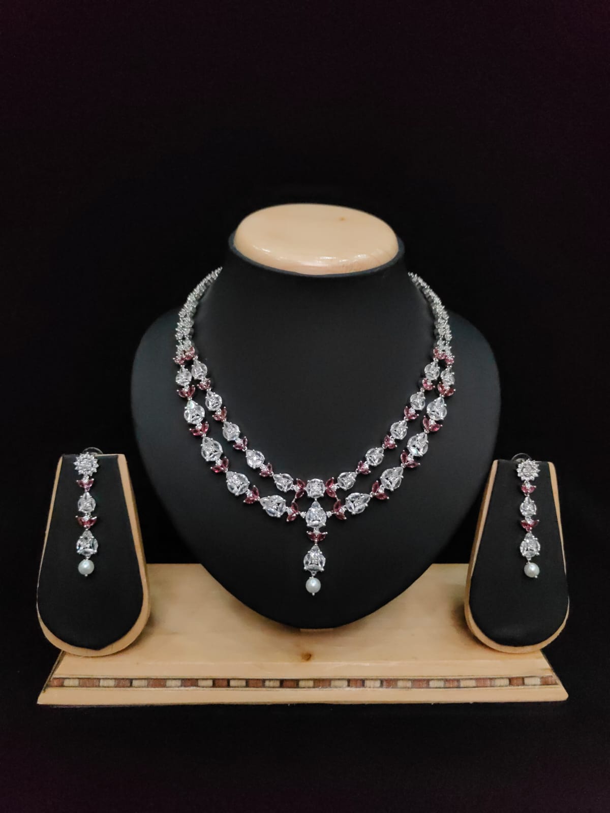 AD ZIRCONS TONE NECKLACE WITH EARRINGS