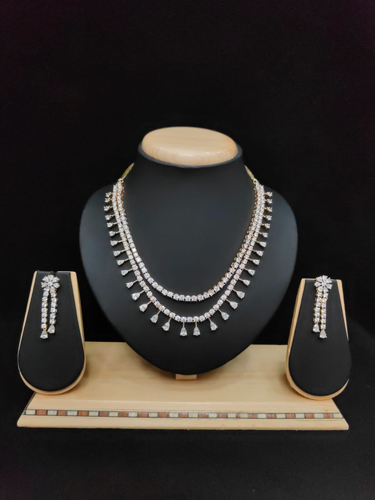 AD ZIRCON STONE NECKLACE WITH EARRINGS