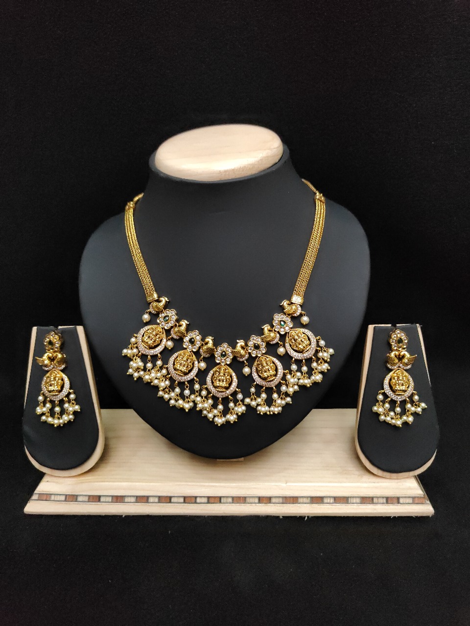 GOLD POLISH LAKSHMI DESIGN NECKLACE WITH EARRING