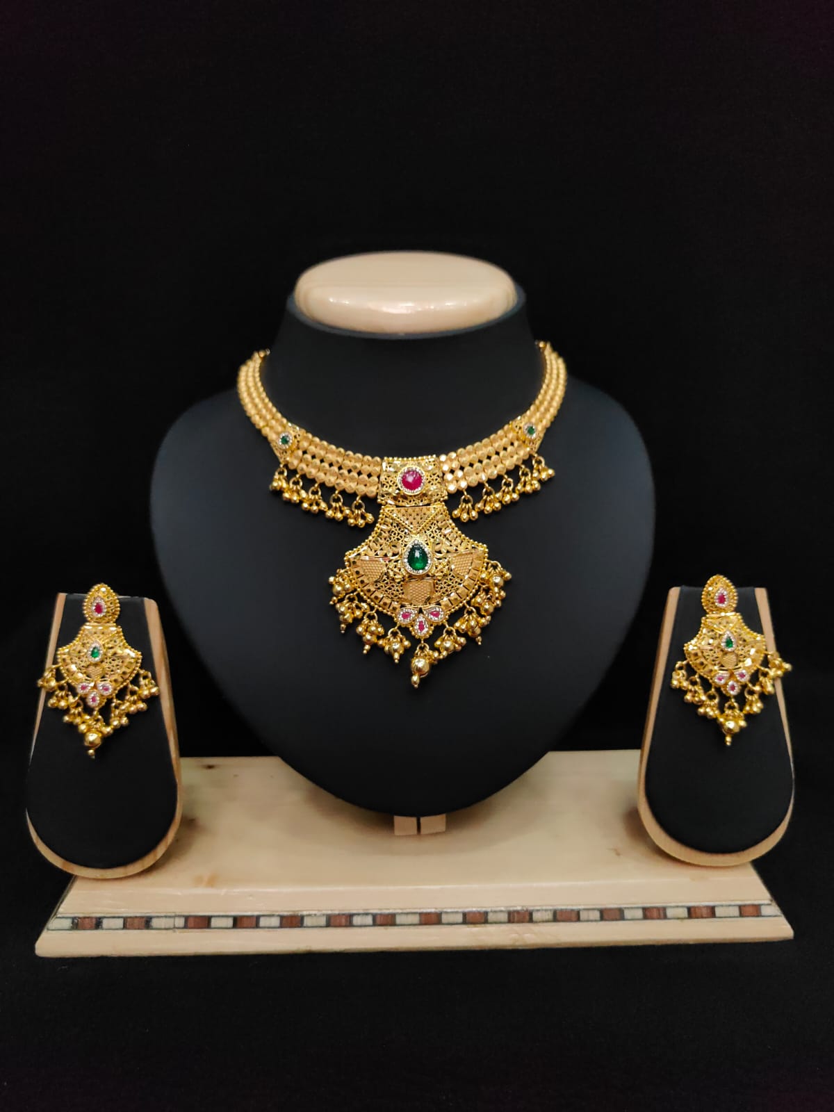 GOLD FINISH NECKLACE WITH EARRINGS