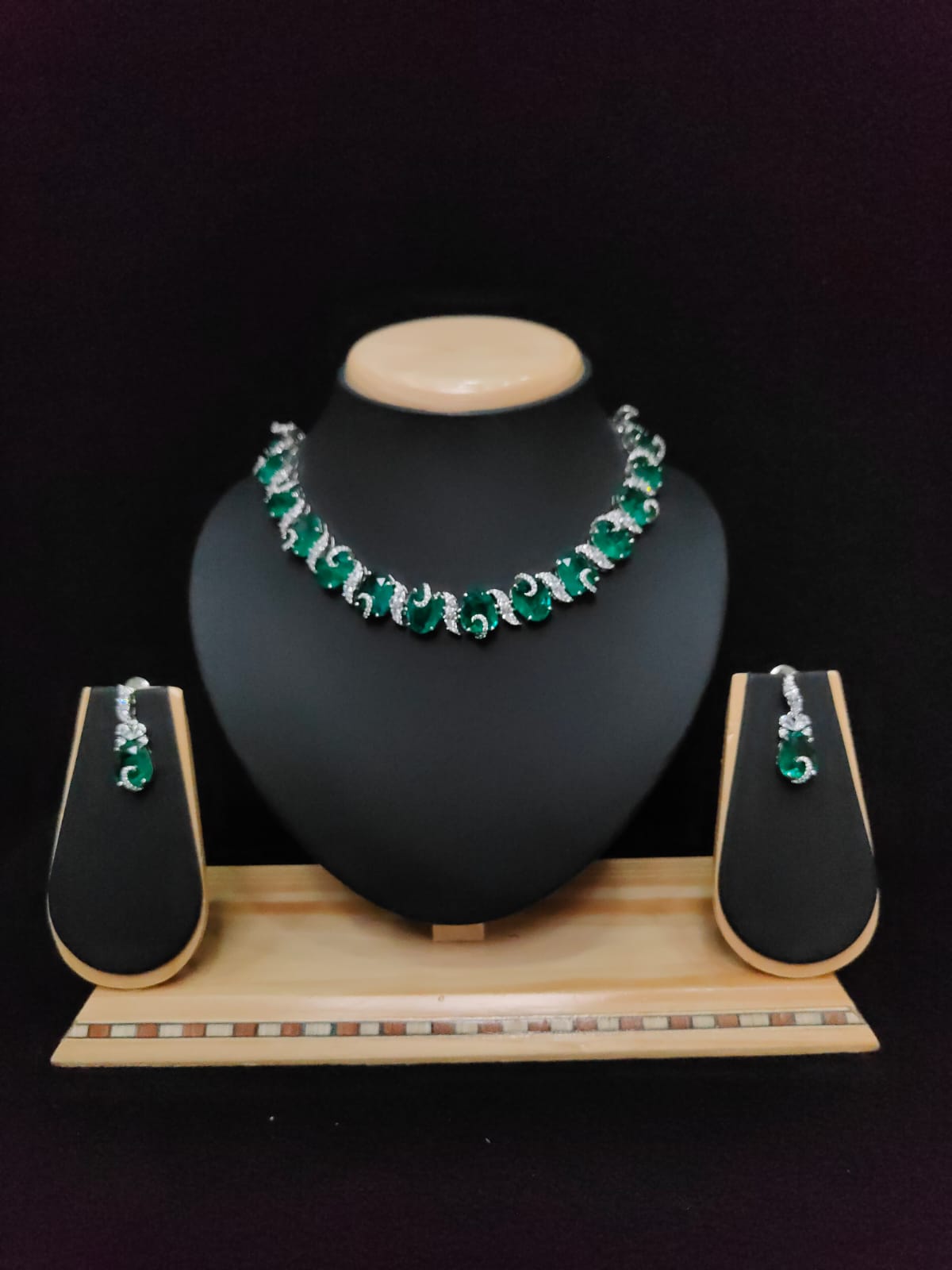 AD ZIRCON STONE NECKLACE WITH EARRINGS