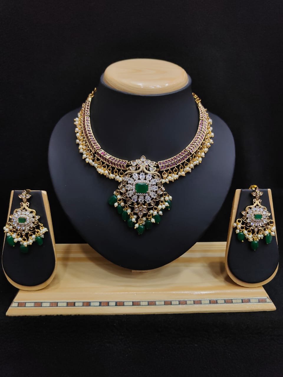 FLORAL DESIGN ANTIQUE NECKLACE WITH EARRINGS