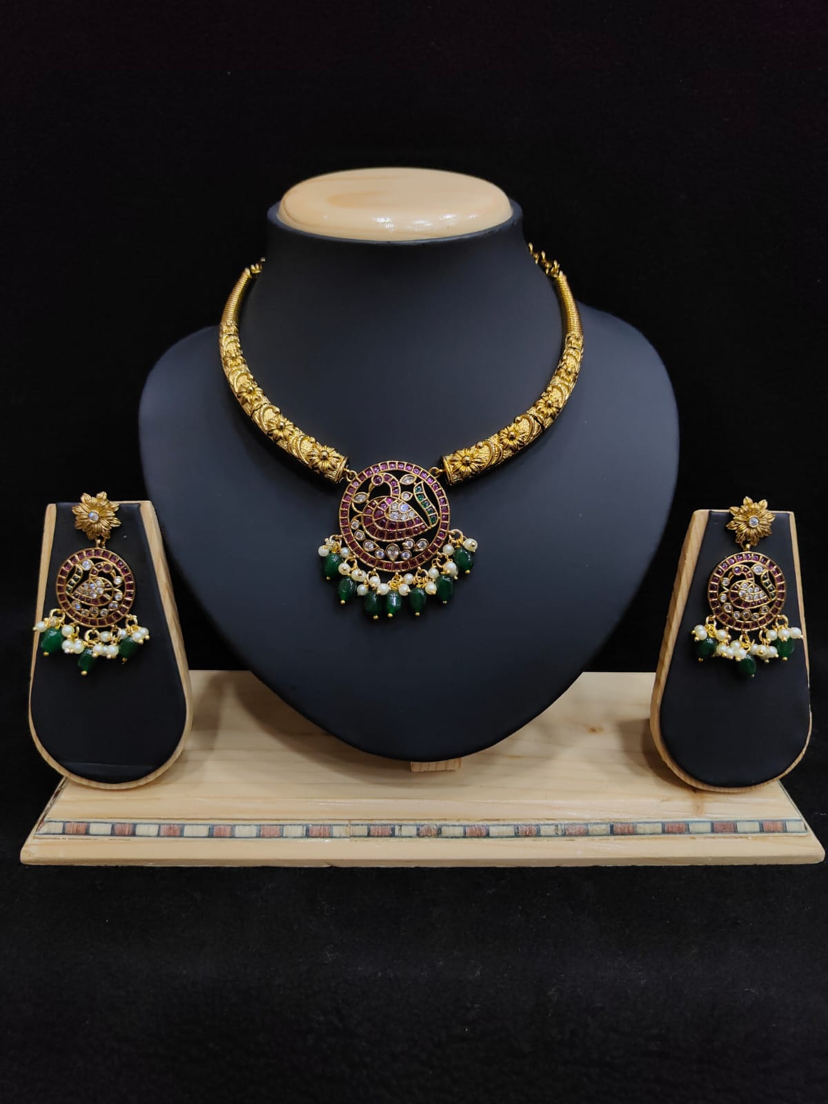 PEACOCK DESIGN HASLI TYPE ANTIQUE NECKLACE WITH EARRINGS