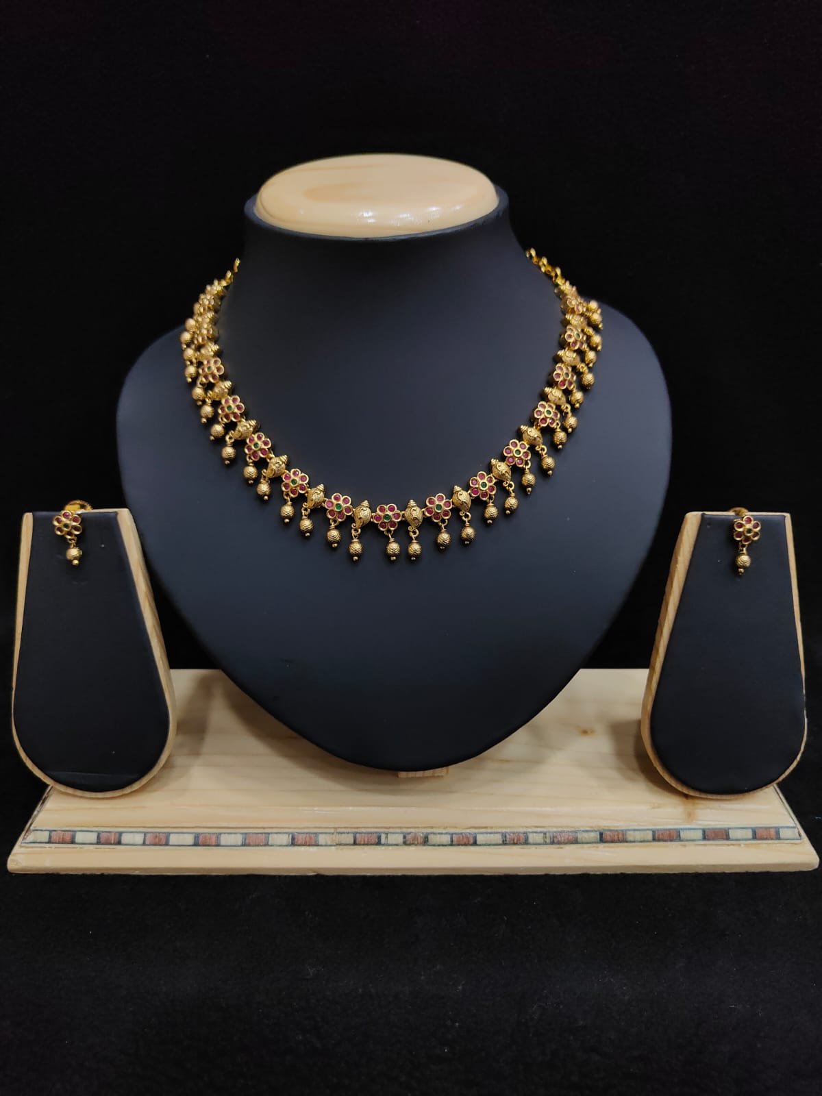 FLORAL DESIGN ANTIQUE NECKLACE WITH CUTE EARRINGS