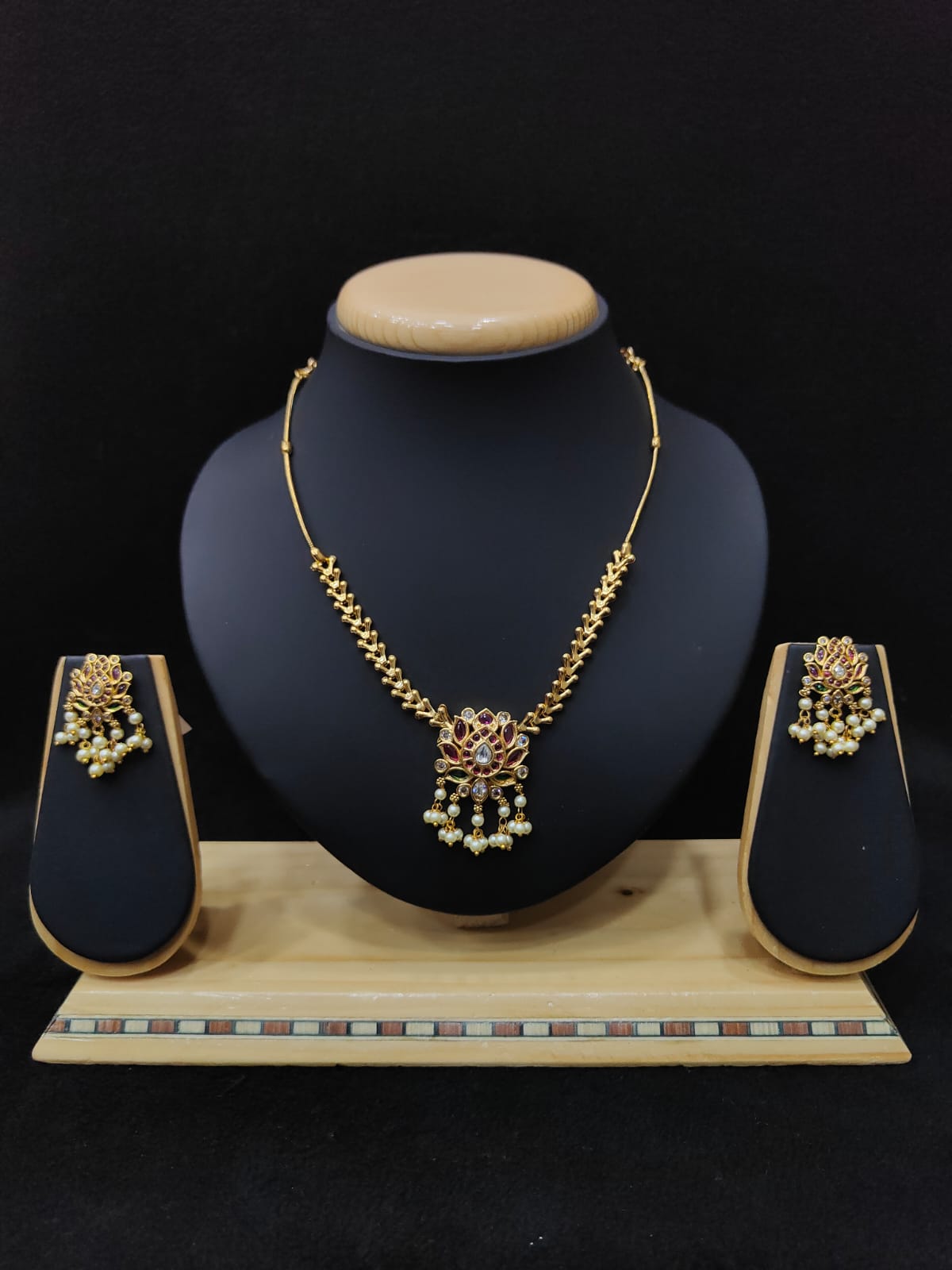 LOTUS DESIGN ANTIQUE NECKLACE WITH EARRINGS