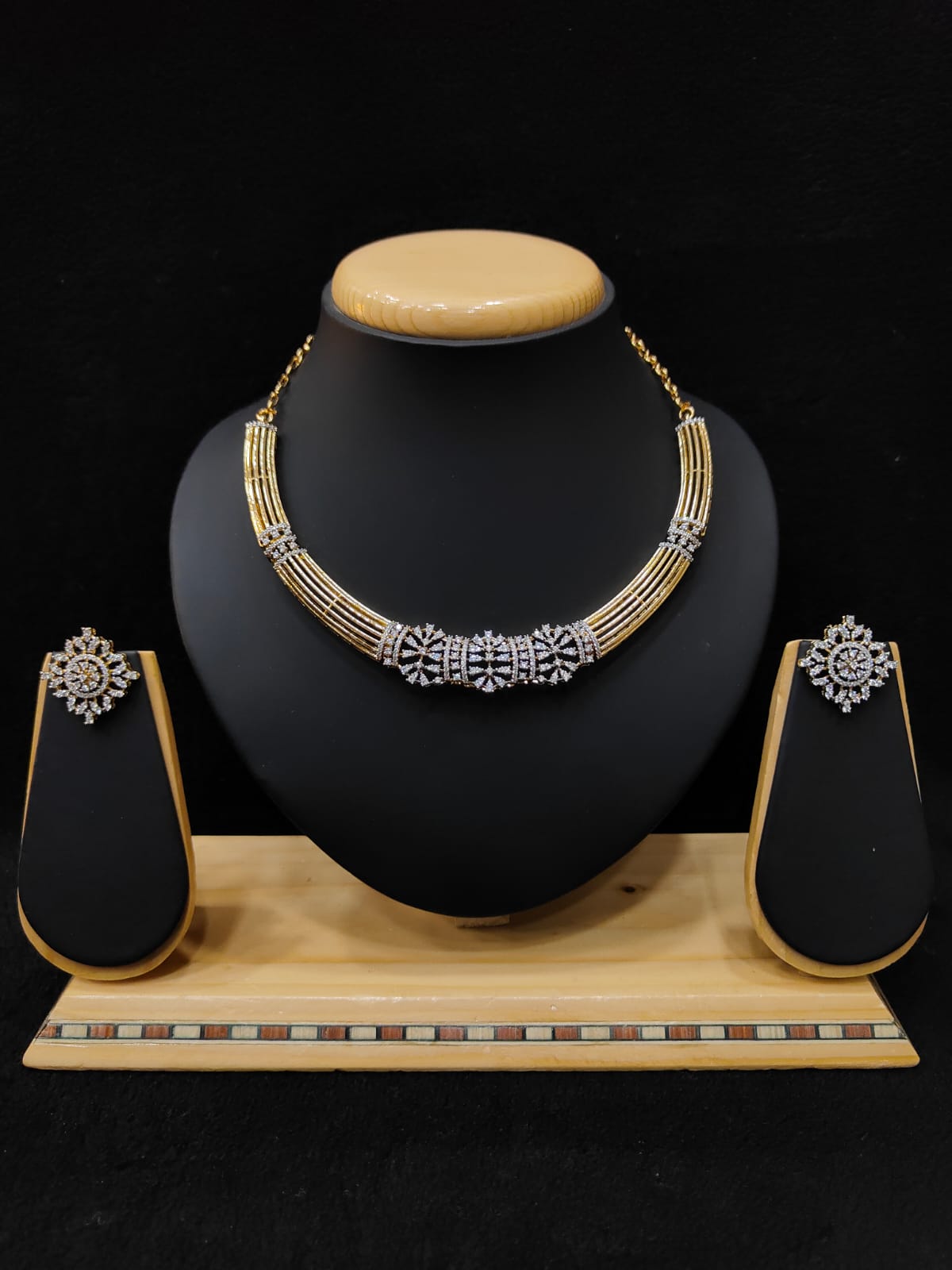 HASLI TYPE CASTING MODEL AD ZIRCON STONE NECKLACE WITH EARRINGS