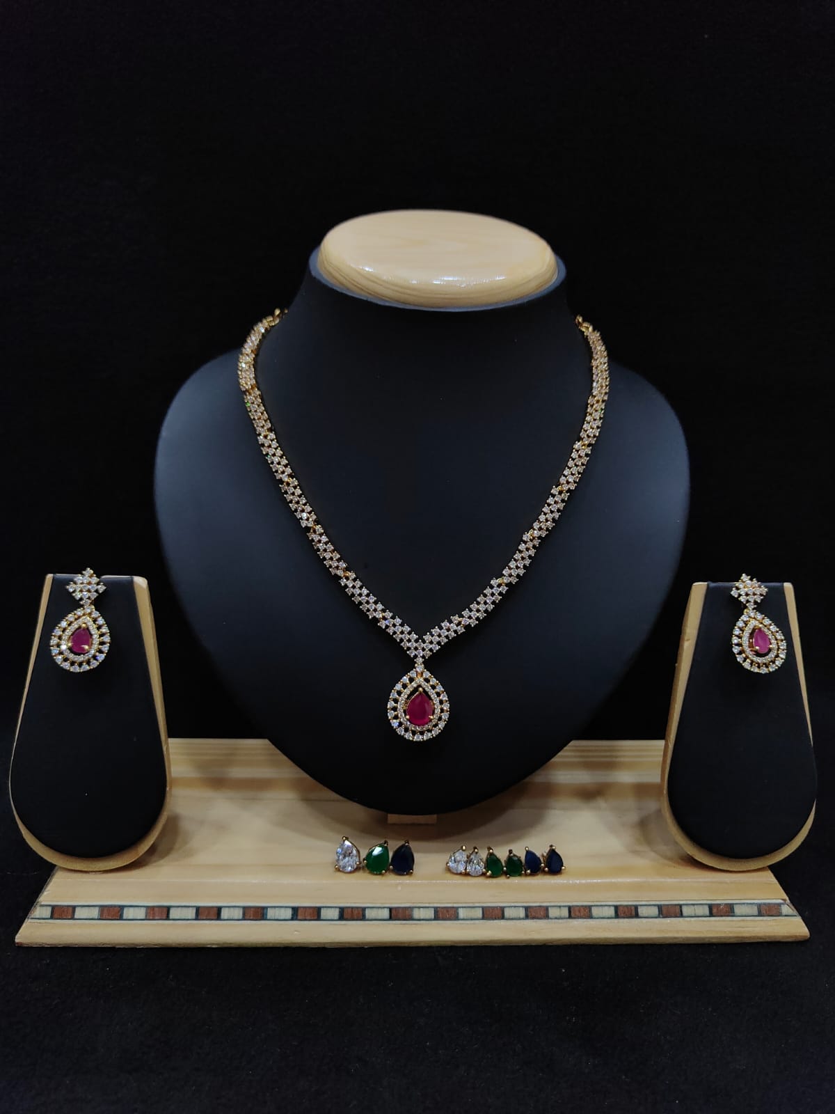 COLOR CHANGEABLE STONE ANTIQUE NECKLACE WITH EARRINGS