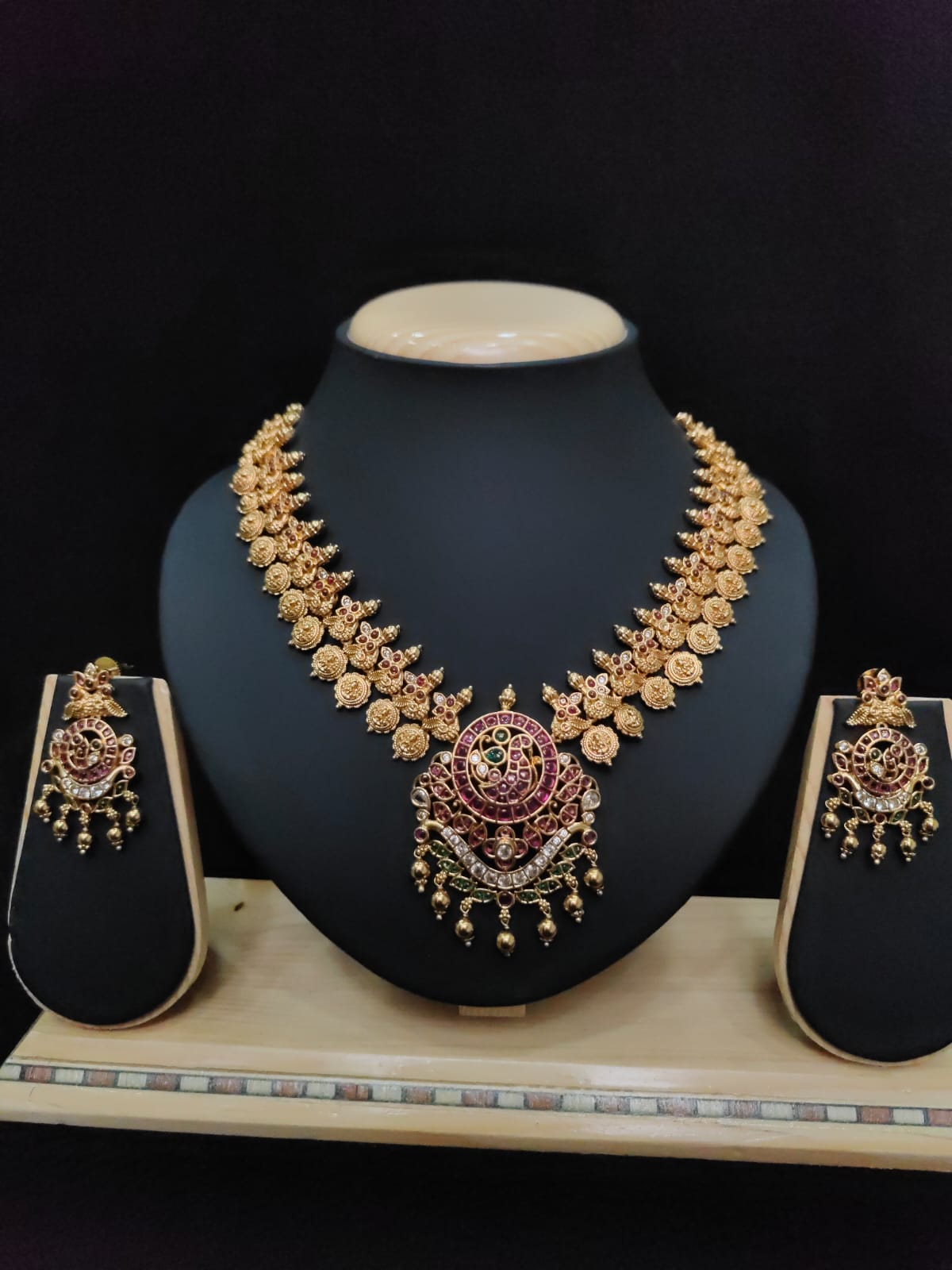 KAASU MALA DESIGN ANTIQUE NECKLACE WITH EARRINGS