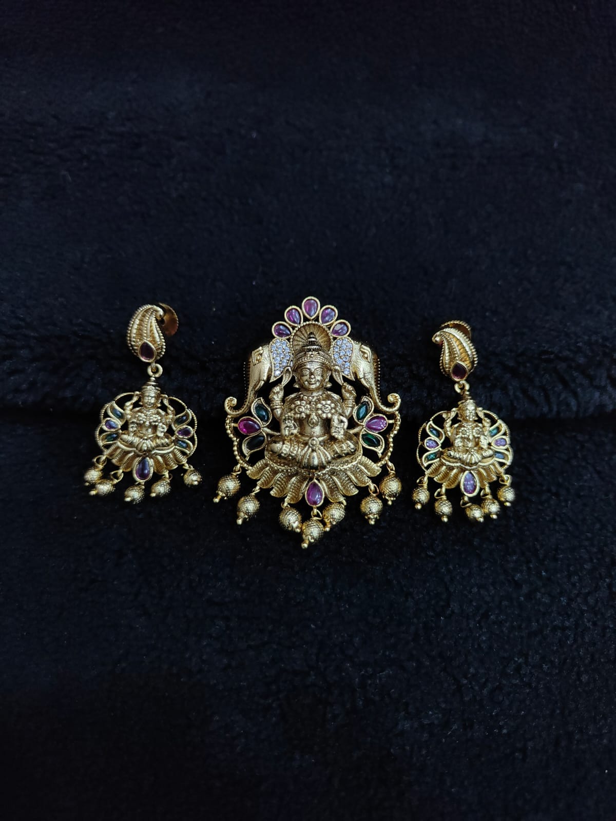 ELEPHANT WITH LAKSHMI DESIGN ANTIQUE PENDANT WITH EARRINGS