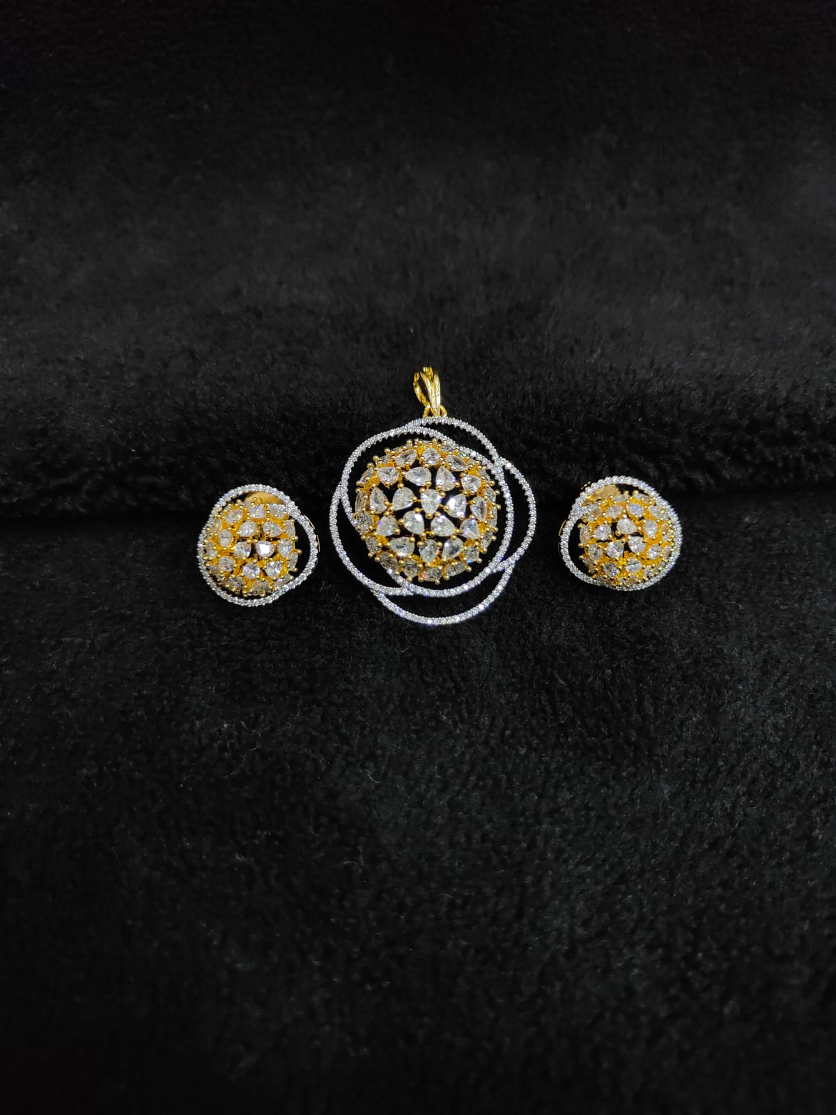 BALL DESIGN AD ZIRCON STONE PENDANT WITH EARRINGS