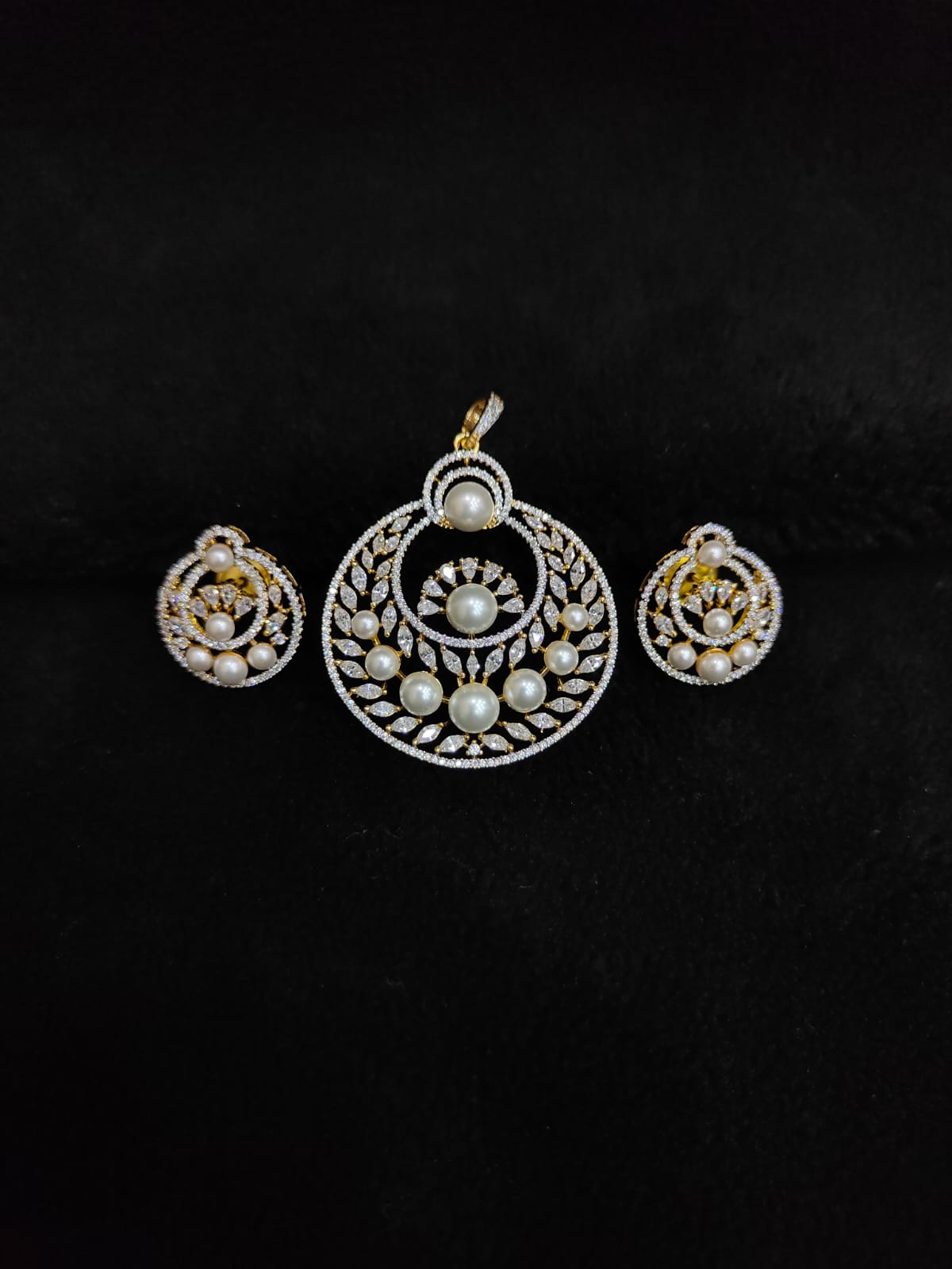 GOLD POLISH AD ZIRCON STONE WITH PEARL PENDANT WITH EARRING
