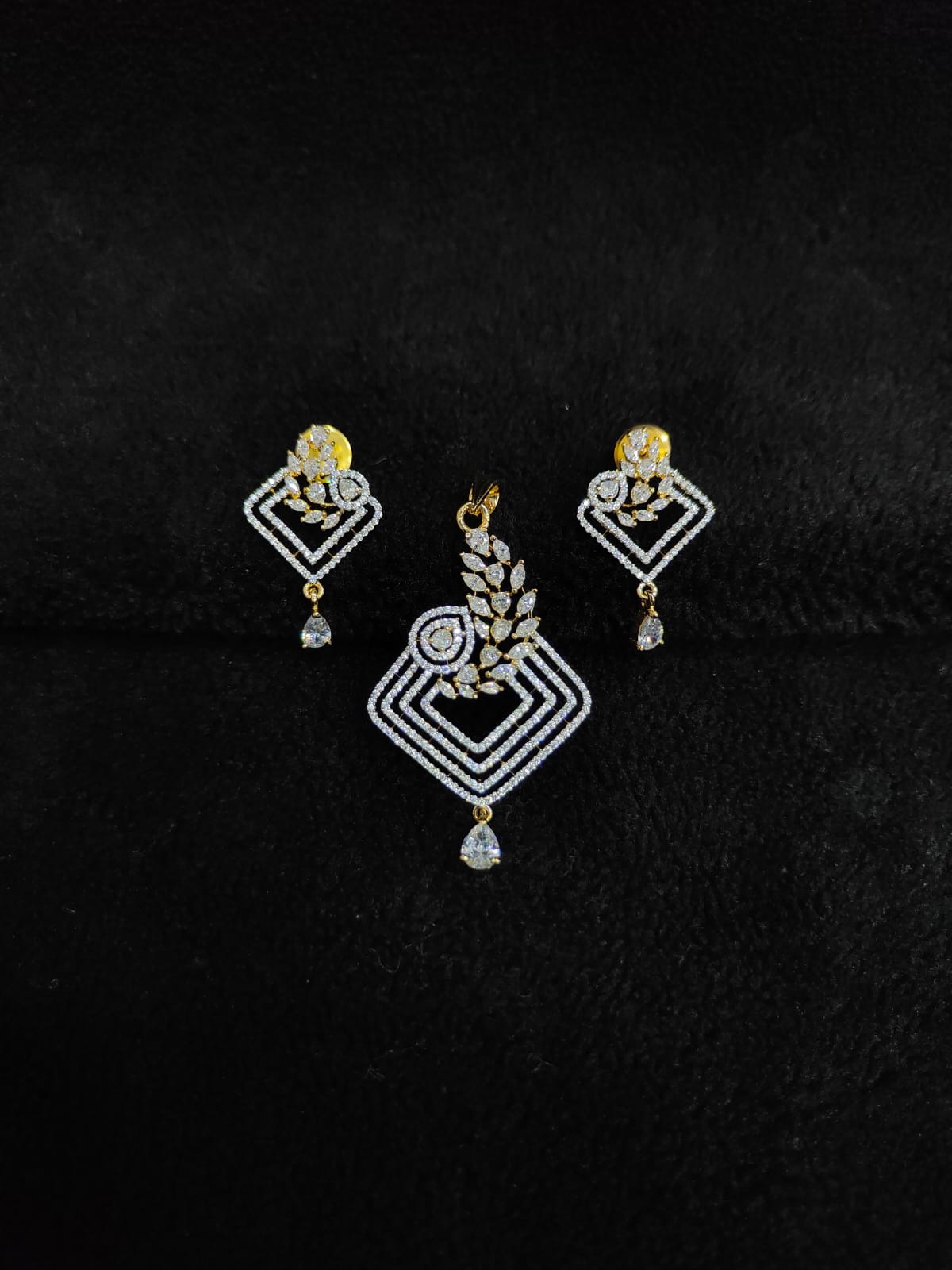 LEAF DESIGN AD ZIRCON STONE PENDANT WITH EARRINGS