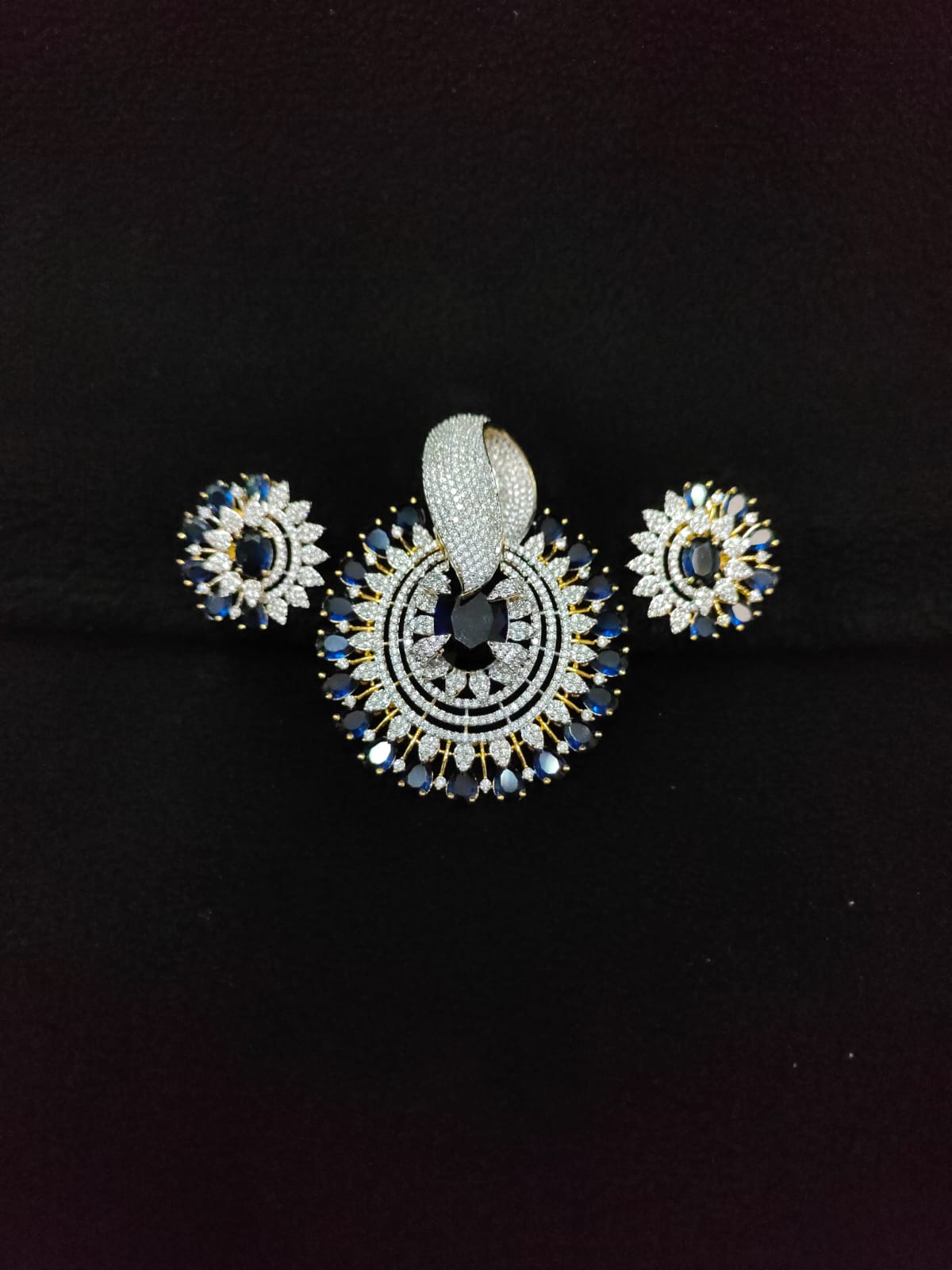 GOLD POLISH AD ZIRCON STONE PENDANT WITH EARRINGS