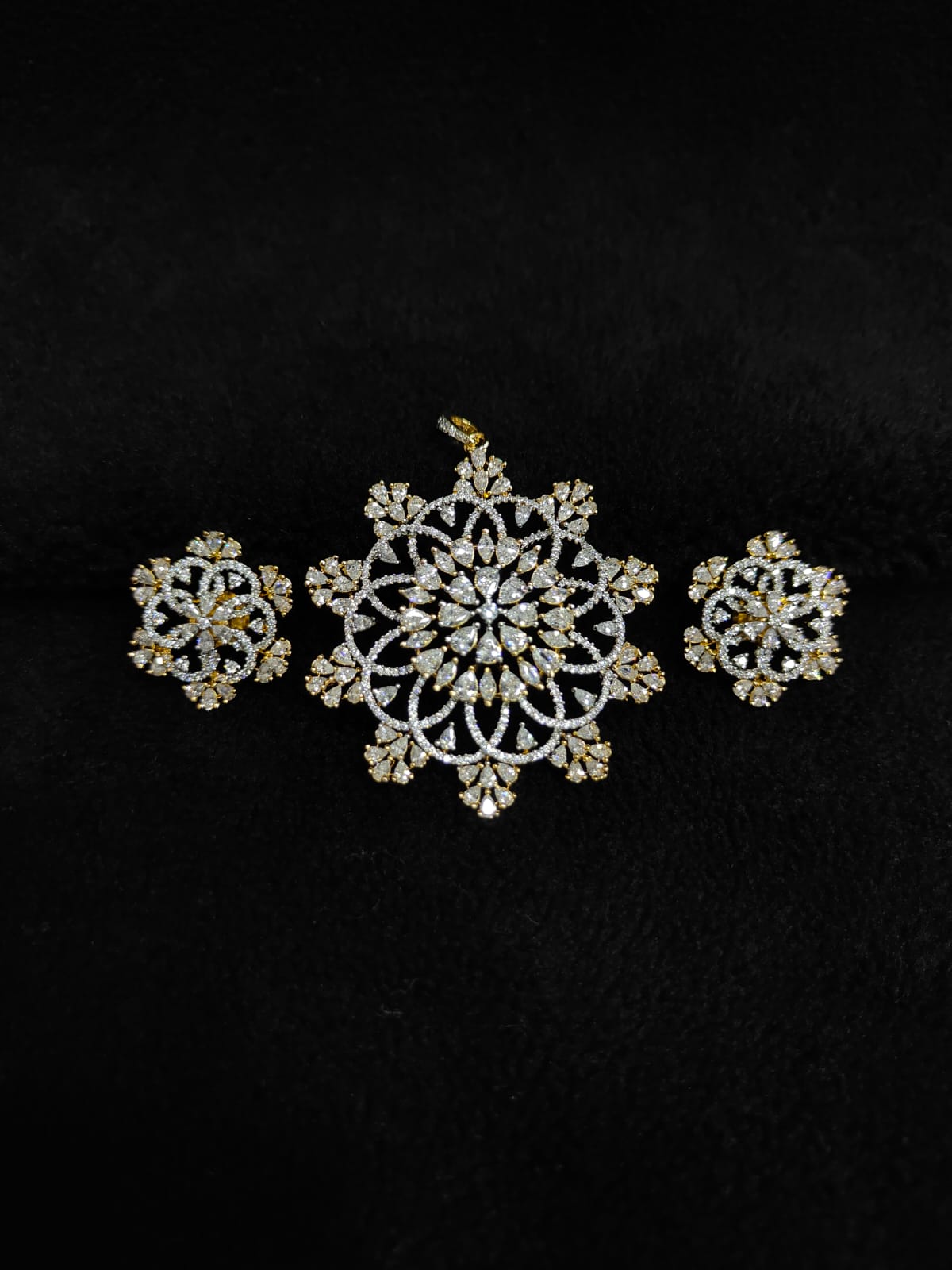 RANGOLI KOLAM DESIGN AD ZIRCON STONE PENDANT WITH EARRINGS