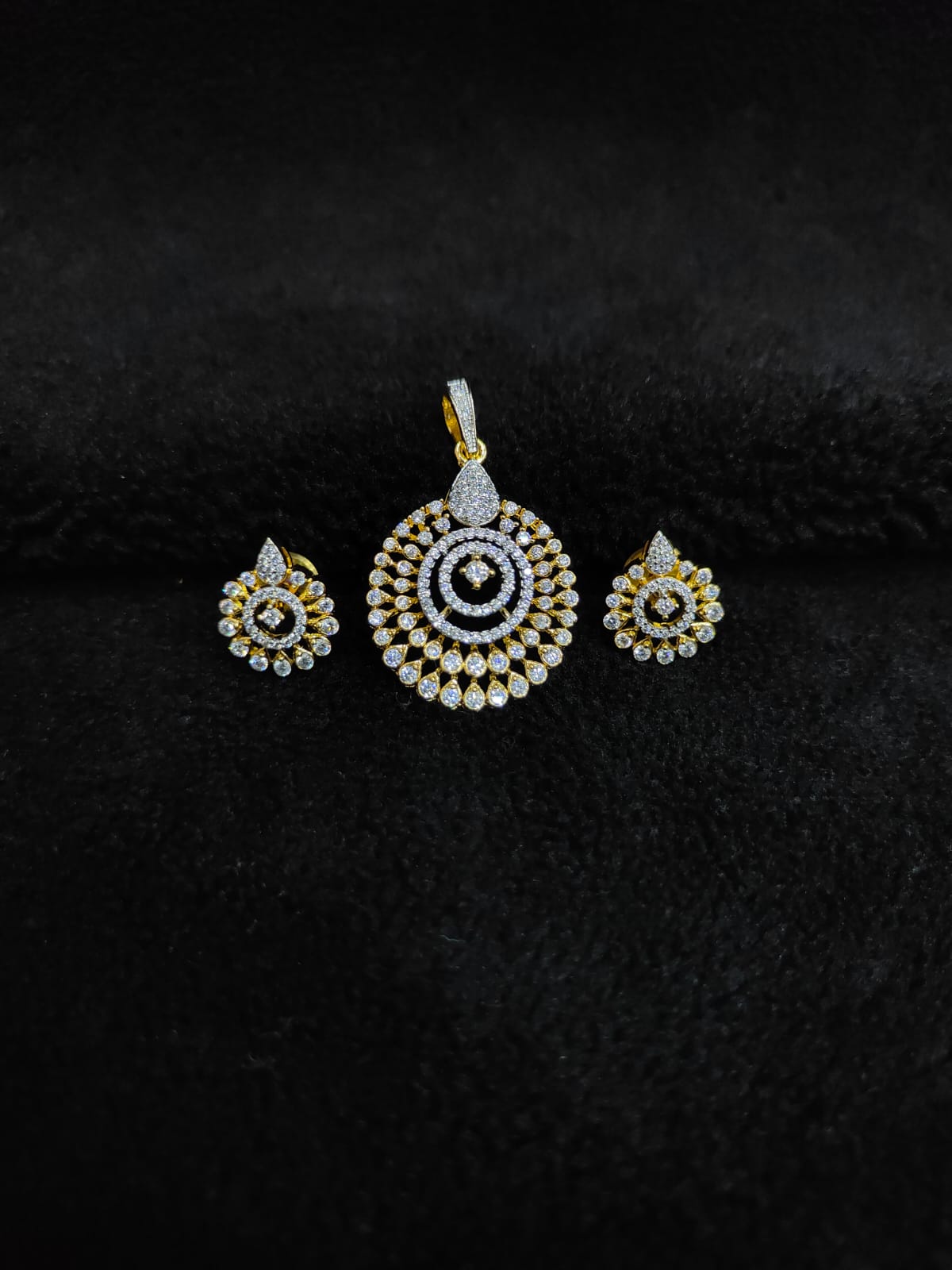 FLORAL DESIGN ZIRCON STONE PENDANT WITH EARRINGS