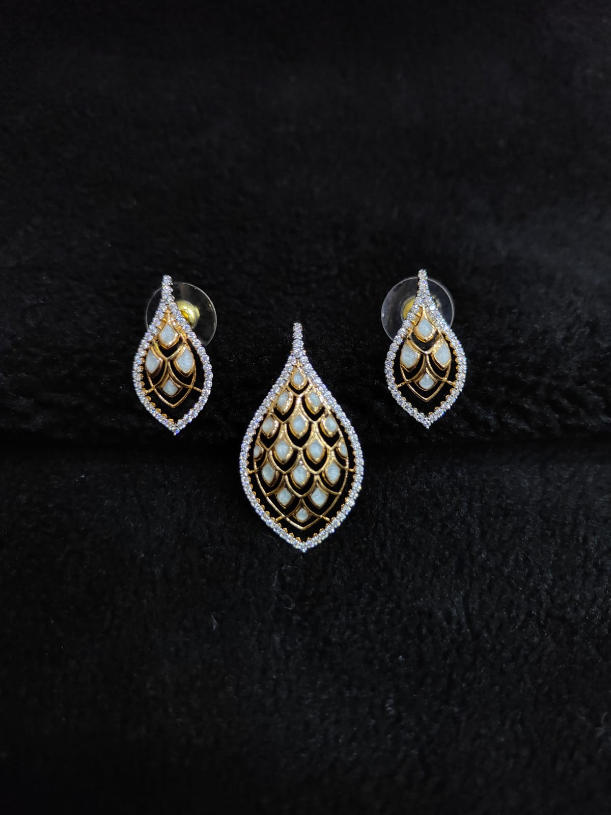 FEATHER DESIGN CASTING MODEL PENDANT WITH EARRINGS