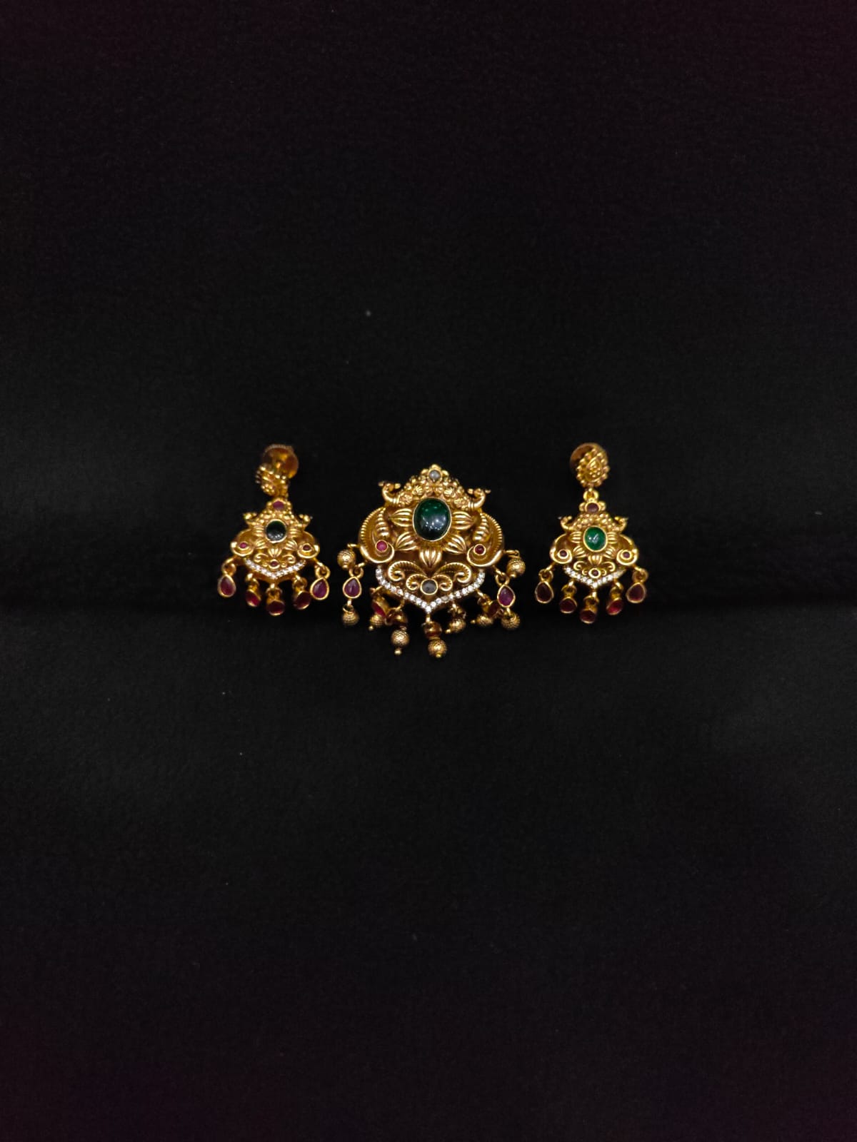 FLORAL DESIGN ANTIQUE PENDANT WITH EARRINGS