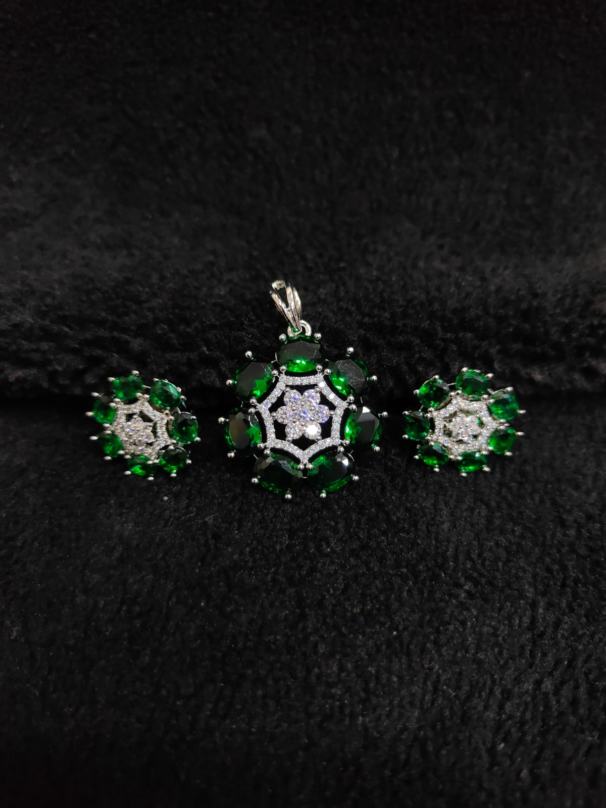 AD ZIRCON STONE FLORAL DESIGN PENDANT WITH EARRINGS
