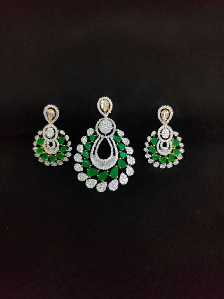 GOLD POLISH AD ZIRCON STONE PENDANT WITH EARRINGS