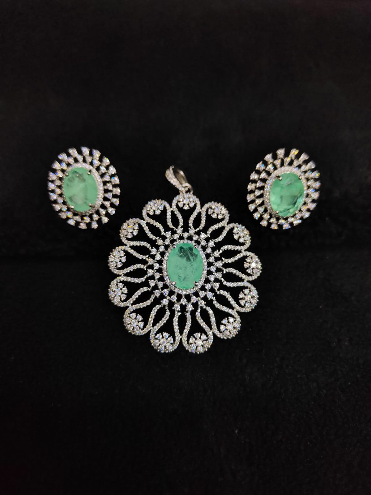 RODIUM POLISH AD ZIRCON STONE WITH PENDANT WITH EARRINGS
