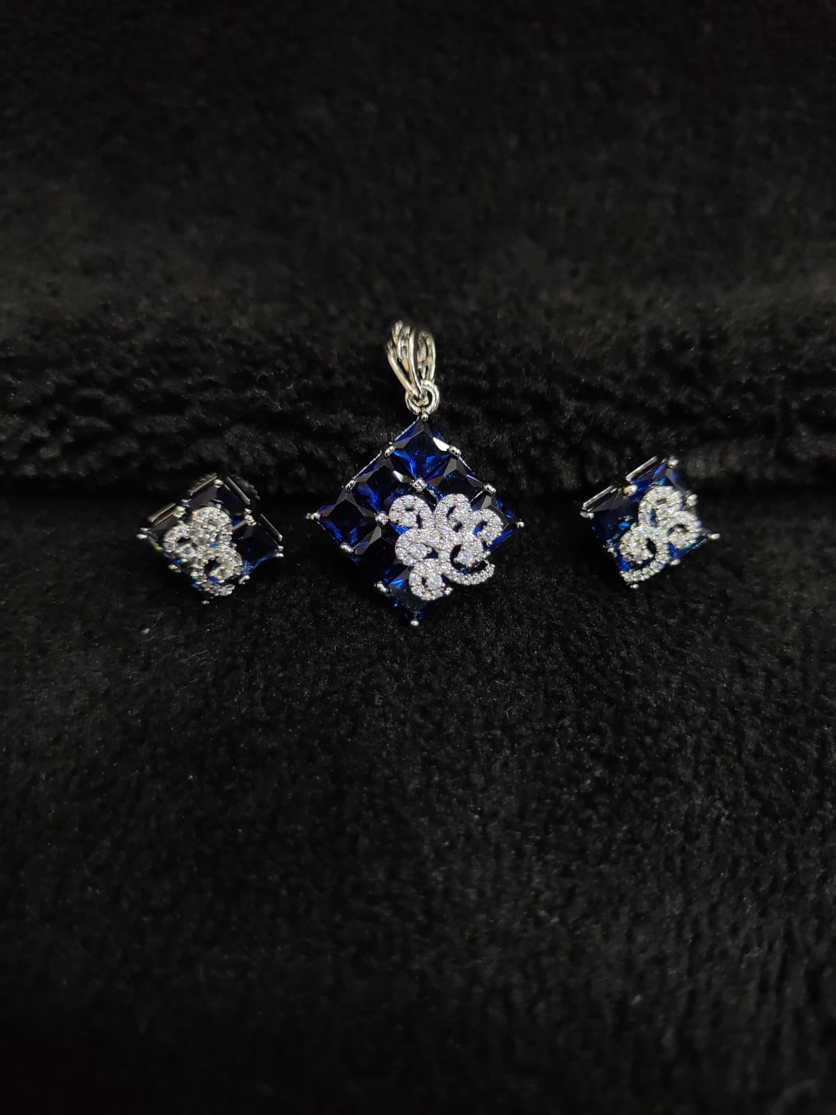 SQUARE SHAPE STONE PENDANT WITH EARRINGS