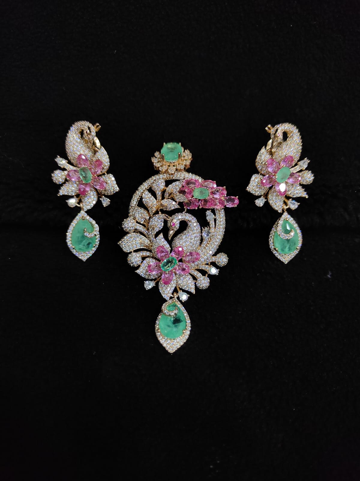 3D PATTERN AD ZIRCON STONE PENDANT WITH EARRINGS