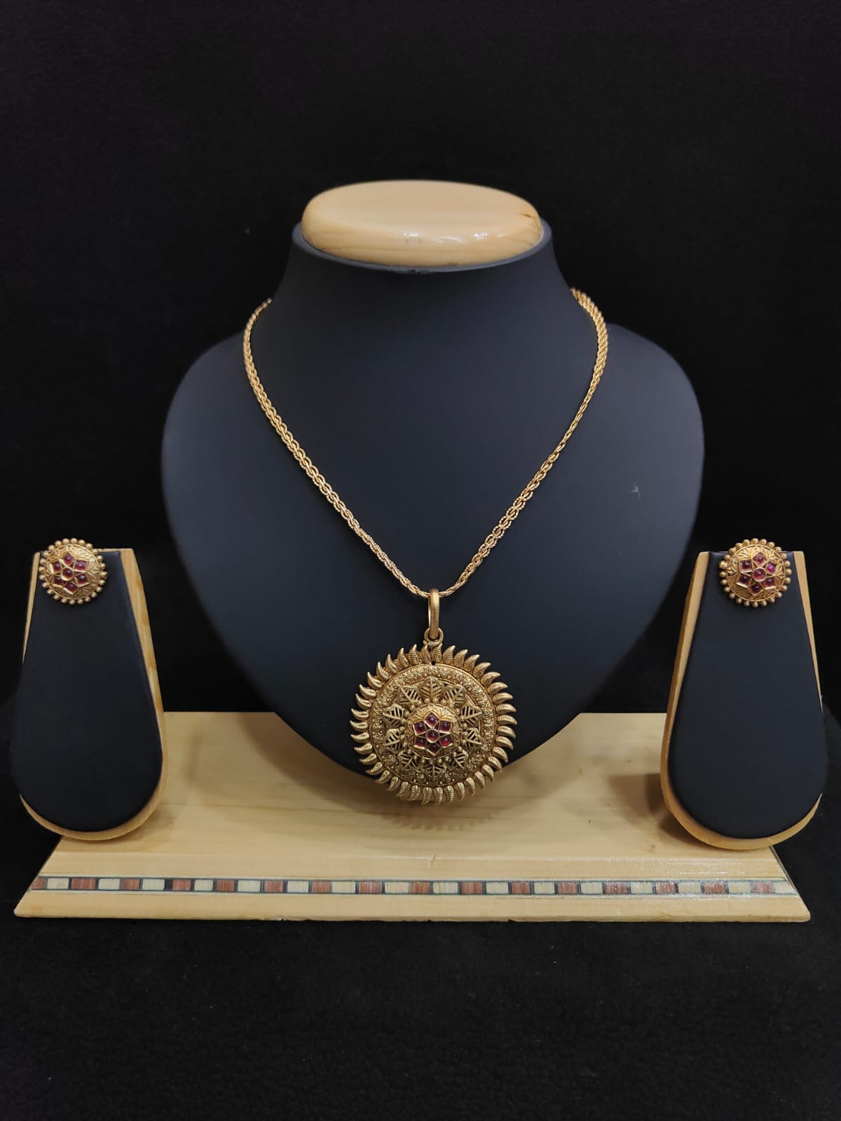 SUN FLOWER DESIGN ANTIQUE PENDANT WITH EARRINGS