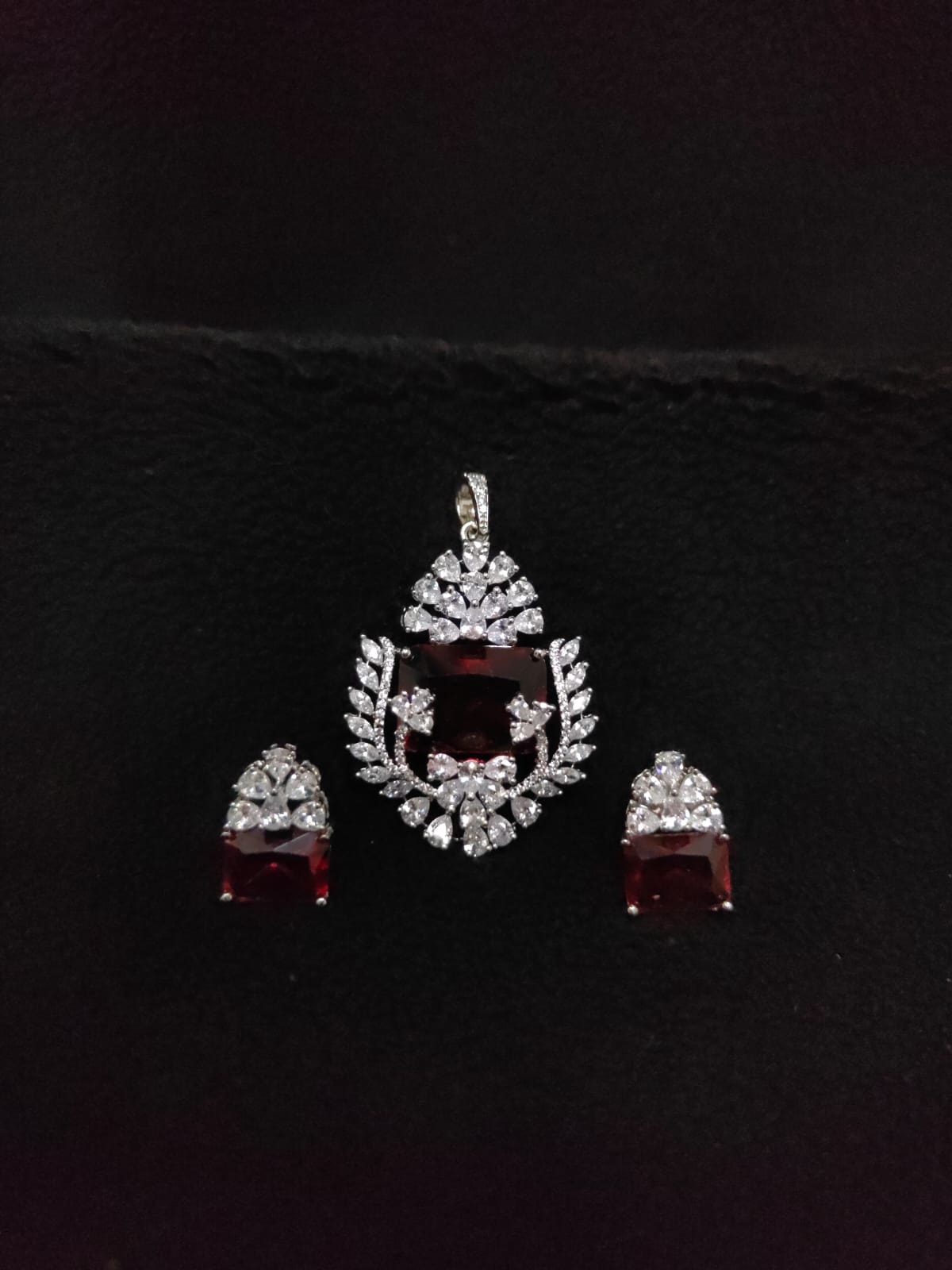 AD ZIRCON STONE PENDANT WITH EARRINGS