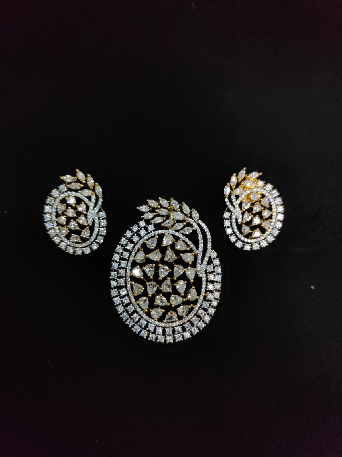 LEAF DESIGN AD ZIRCON STONE PENDANT WITH EARRINGS