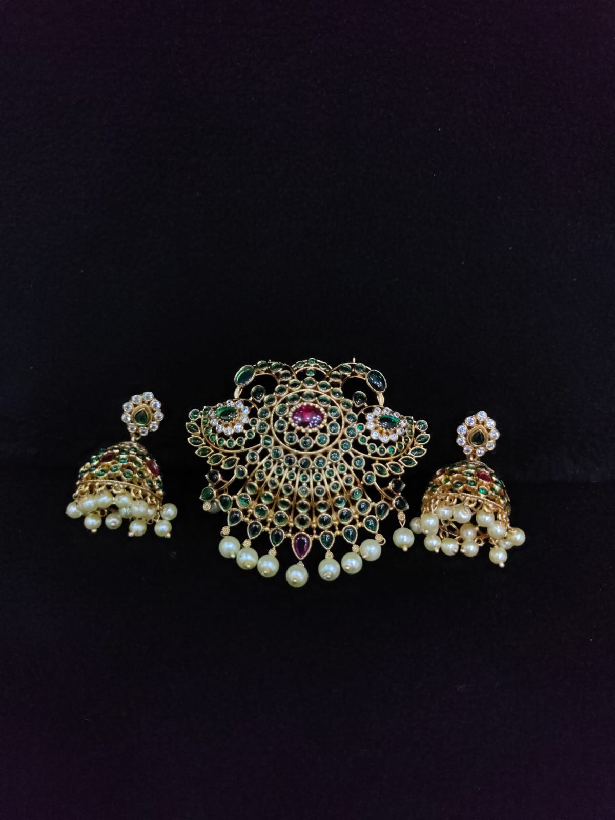 PEACOCK DESIGN RUBY STONE ANTIQUE PENDANT WITH EARRINGS