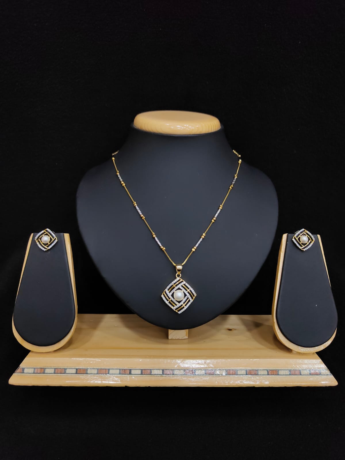 DIAMOND SHAPE AD ZIRCON STONE WITH PEARL PENDANT AND CHAIN WITH EARRINGS