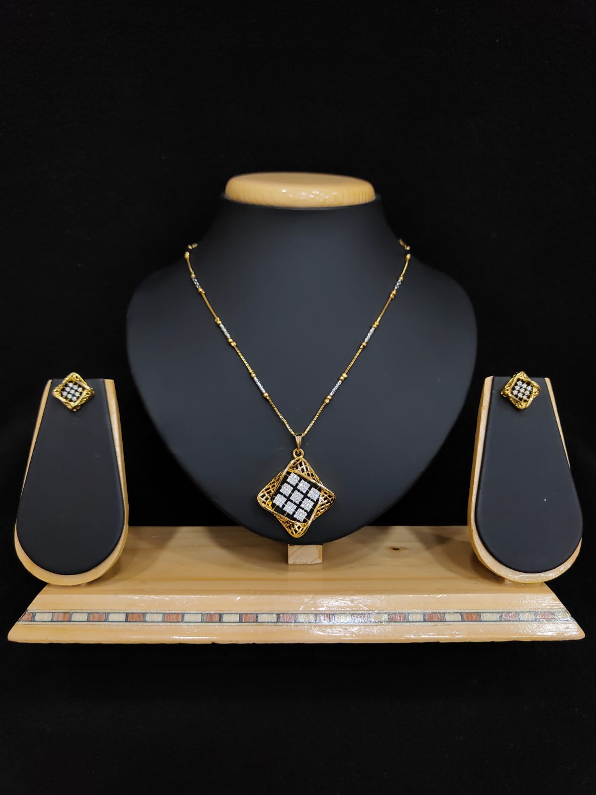 DIAMOND SHAPE CASING MODEL PENDANT AND CHAIN WITH EARRINGS
