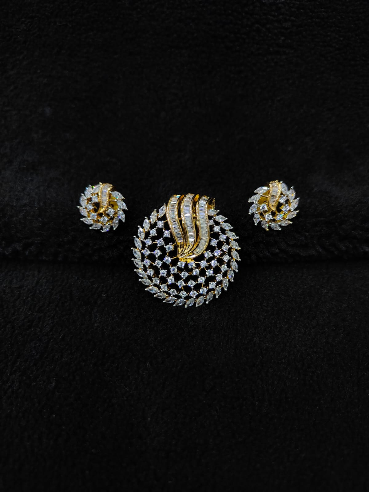 CIRCLE DESIGN AD ZIRCON STONE PENDANT WITH EARRINGS