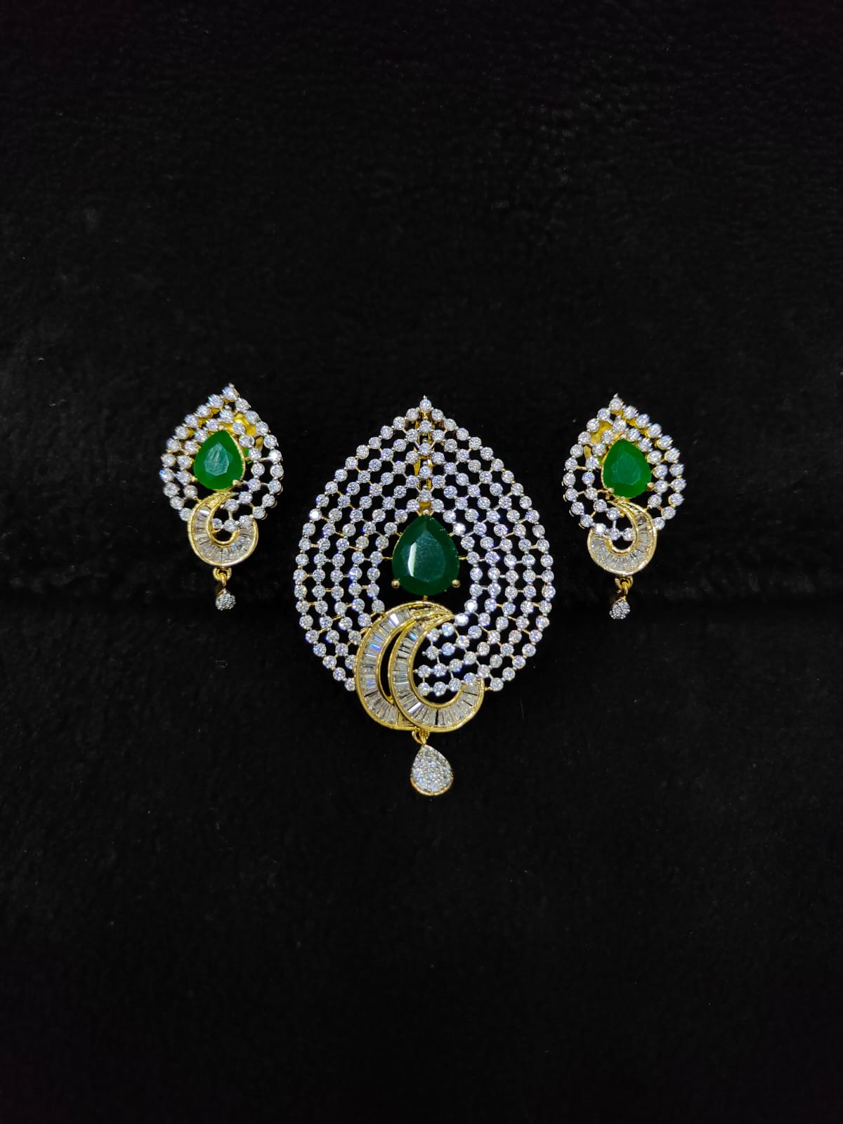 THILAGAM SHAPE AD ZIRCON STONE PENDANT WITH EARRINGS